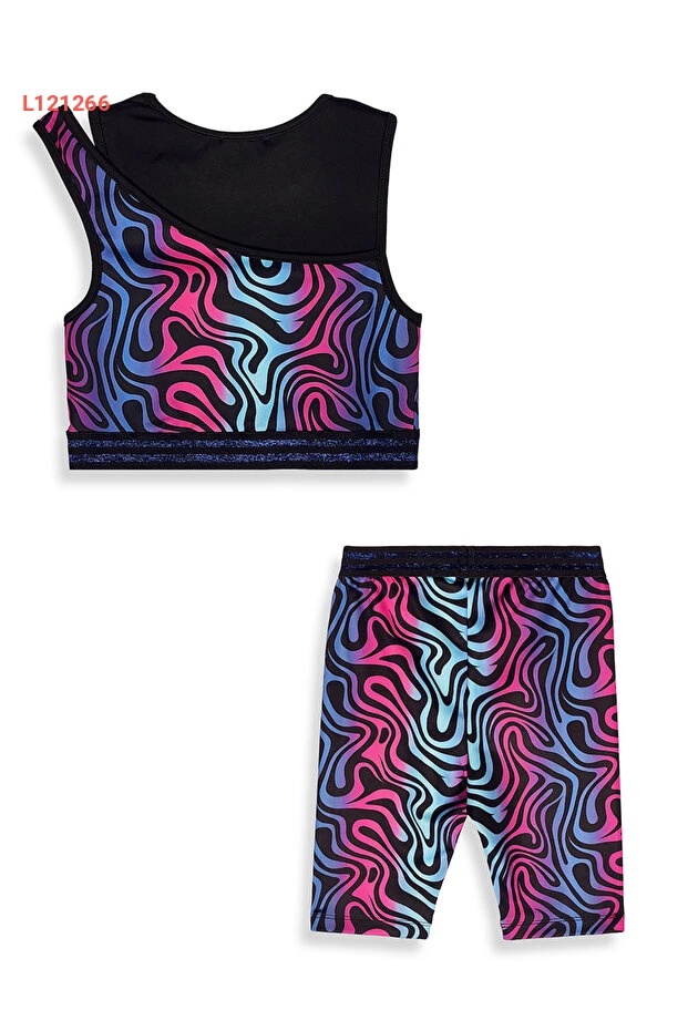 مجموعة ملابس رياضية بناتية من دينوكيدز - تي شيرت قصير مع بنطال ضيق 6-11 سنة