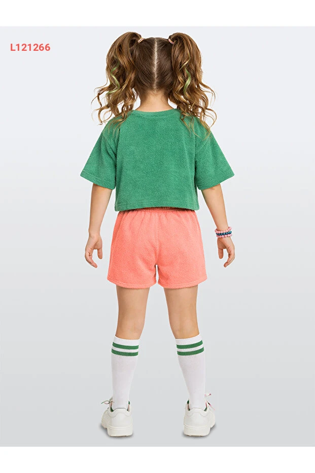 مجموعة صيفية بناتية من دنوكيدز - بلوزة كروبه وشورت من قماش الفوول أونسي هورن للأطفال 4-10 سنوات
