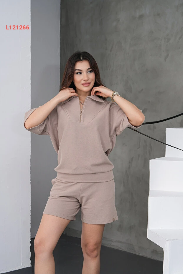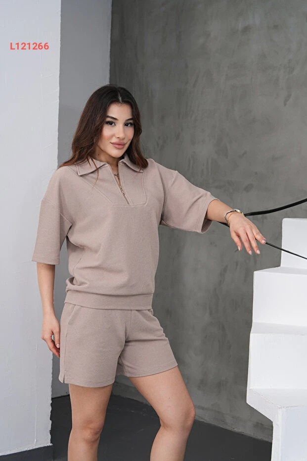 استمتعي بأناقة غير تقليدية مع طقم DI LORIA النسائي باللون البيج، والذي يجمع بين الراحة والحيوية. يتكون من سويت شورت مزود بسحاب، مما يمنحك حرية الحركة وأناقة عصرية في آن واحد. مثالي للأنشطة اليومية أو الاسترخاء في المنزل، يتناسب بسهولة مع إطلالاتك المختلفة.