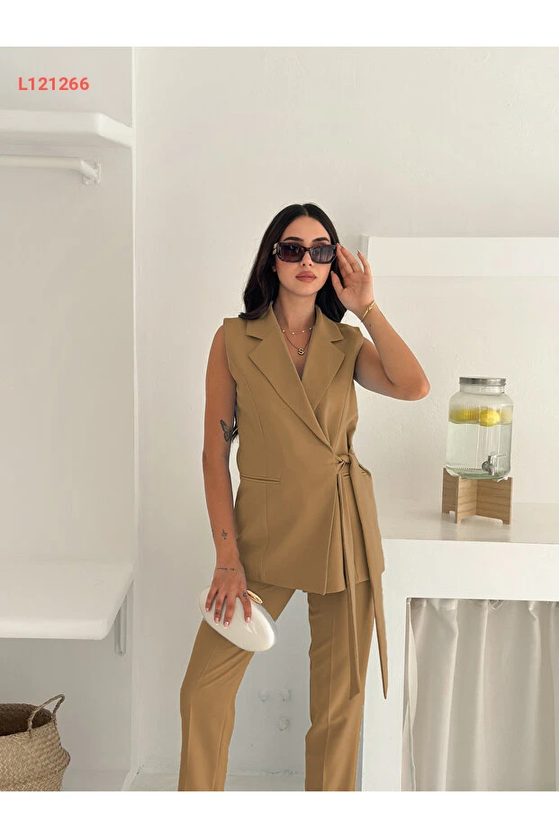 استمتع بأناقة لا مثيل لها مع مجموعة diaves Vizon التي تضم سترة بكوز متميزة وبنطلون حوّاص عصري. مصنوعة من قماش متين، توفر هذه المجموعة مزيجًا مثاليًا من الراحة والأناقة، مما يجعلها الخيار المثالي للارتداء اليومي أو المناسبات الخاصة. تُضيف رباط الخصر لمسة عصرية ويتيح لك ضبط المقاس بحسب راحتك.