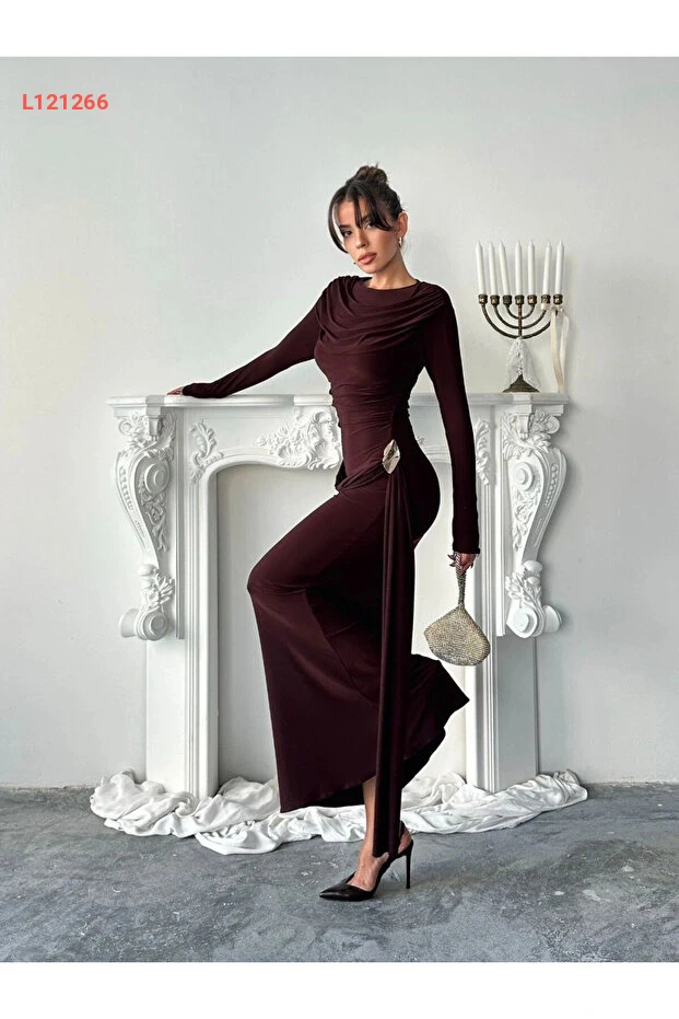 فستان أنيق طويل بتفاصيل غير متناسقة وقصة مميزة لإطلالة ساحرة من دييمود