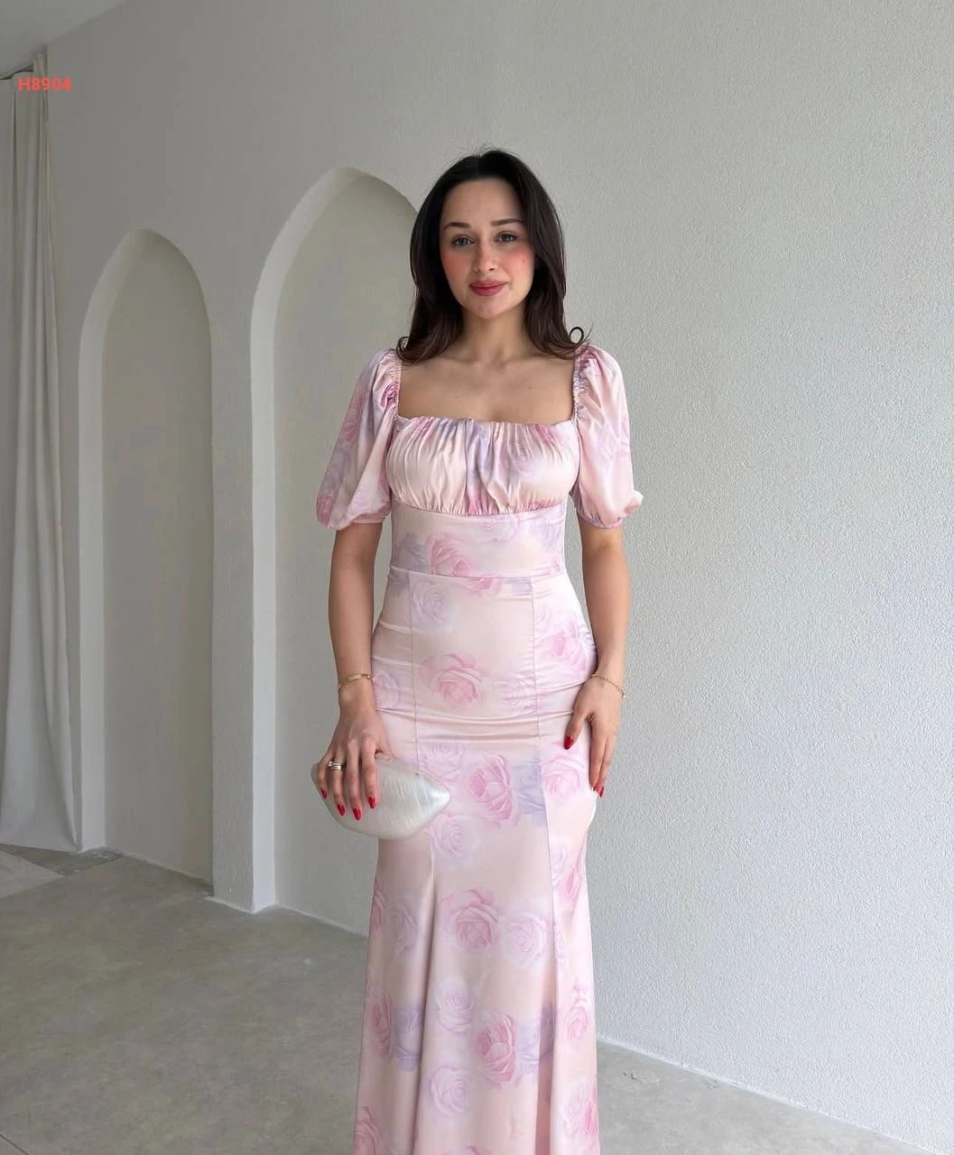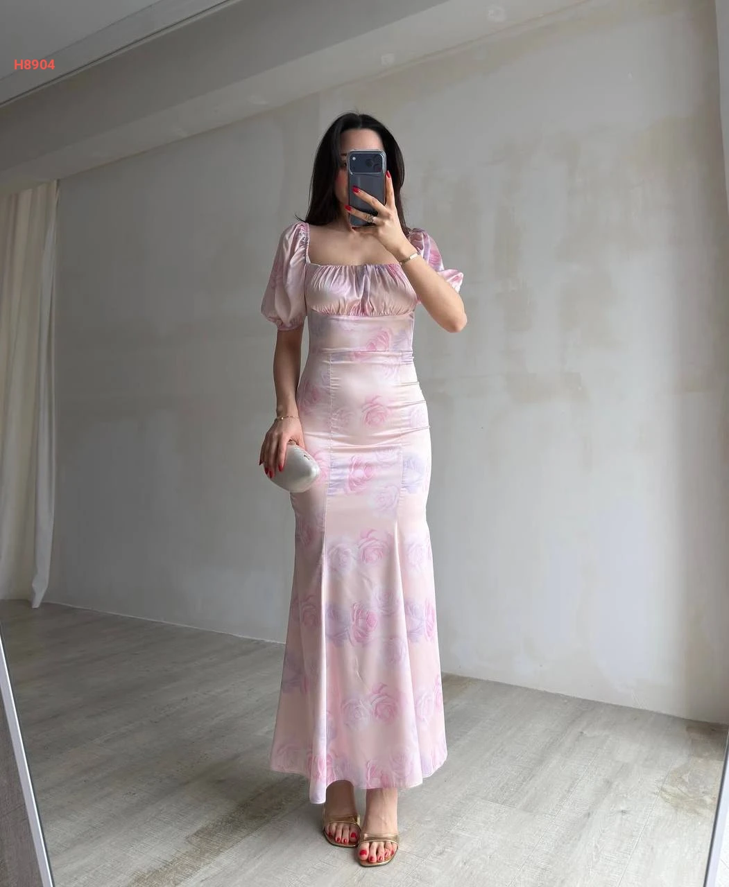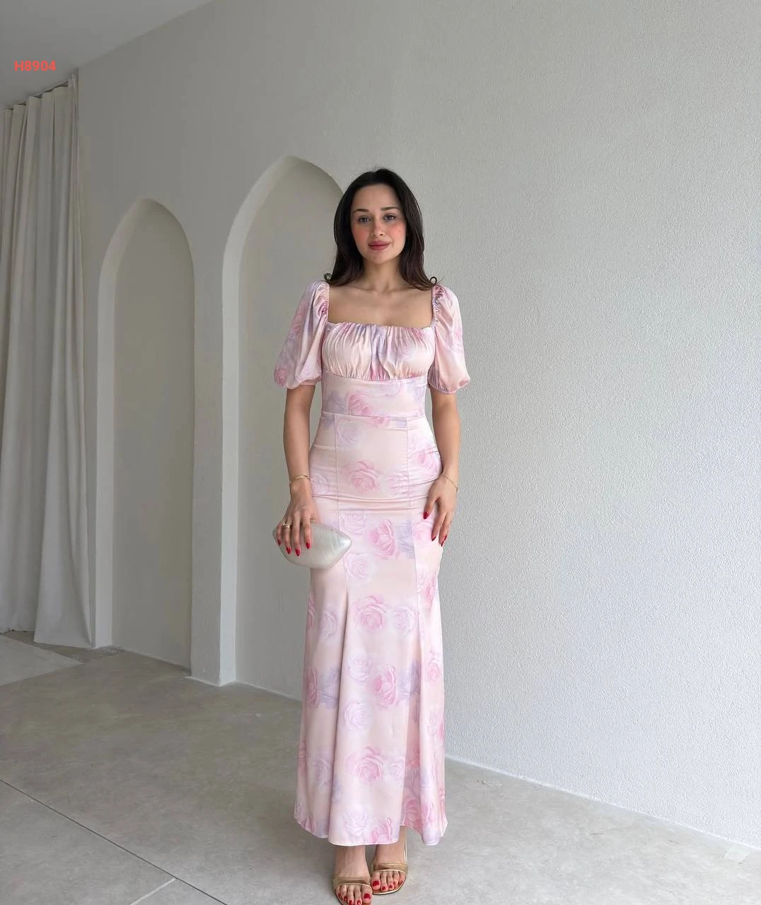 فستان طويل ساتان ديجيتال