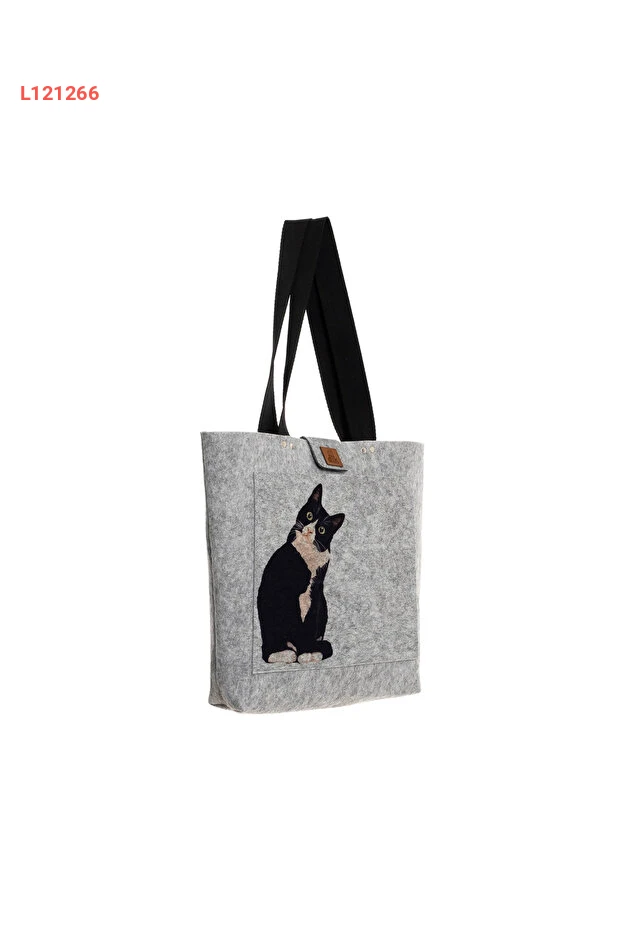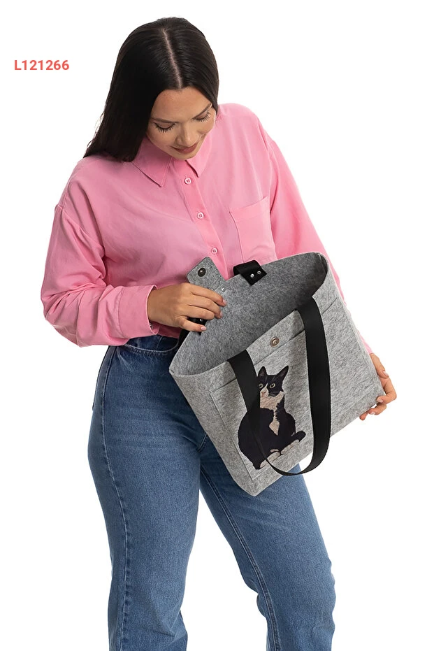 حقيبة كتف كبيرة ديلكولاي - حقيبة مصنوعة من اللباد بطبعة قطة - سلسلة الحيوانات الأليفة - 40 × 33 سم