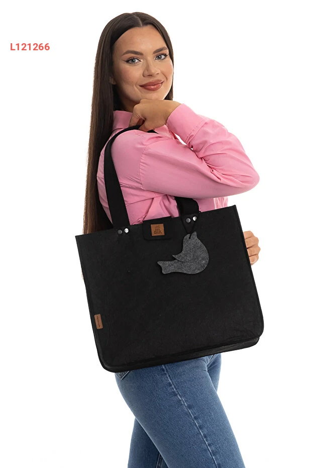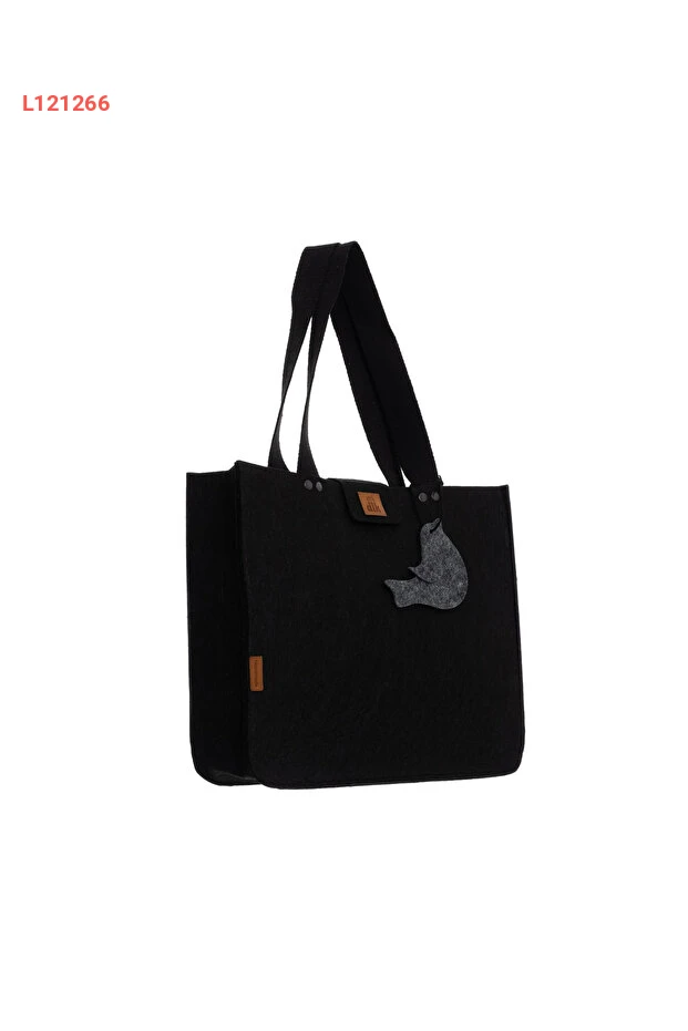 حقيبة كتف كبيرة من ديلكولاي - تصميم خاص من اللباد - أساسية - سوداء - 40 X 33 X 10 سم