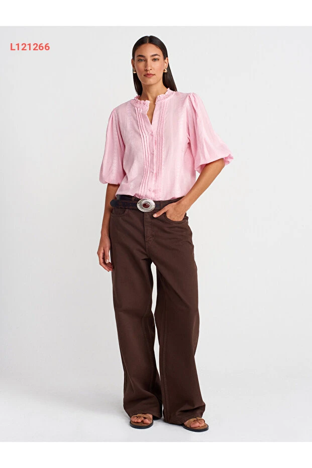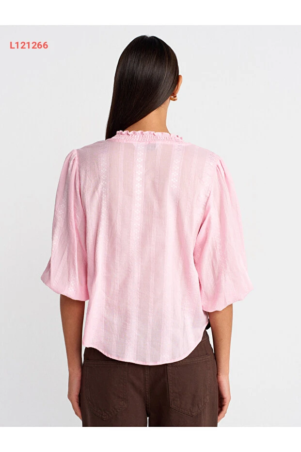 استمتع بإطلالة فريدة مع قميص Dilvin 5807 ذو الكشكشة المنقوشة والأكمام المنتفخة. بلون وردي فاتح يجمع بين الأناقة والراحة، هذا القميص مثالي لإضفاء لمسة من الرقي على أي مناسبة. اجعلي كل يوم مميزاً مع تصميمه العصري والمريح الذي يناسب جميع الأجساد.