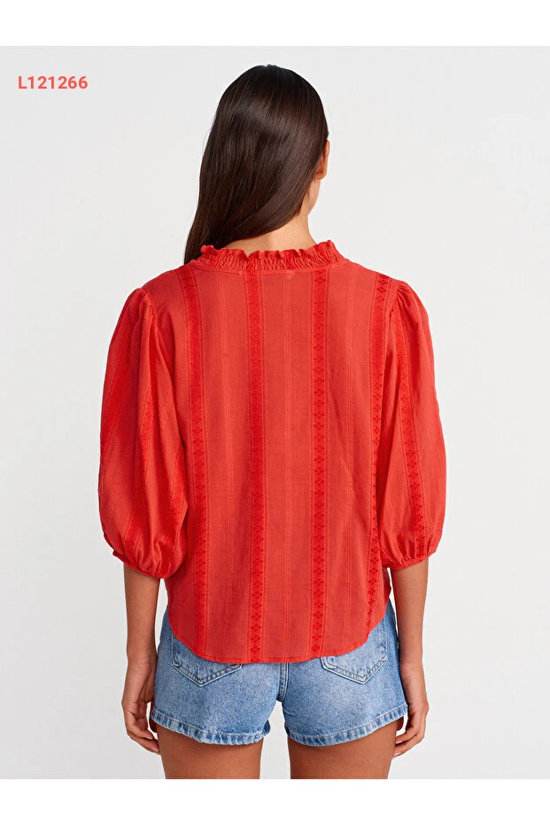 استمتع بإطلالة أنيقة مع قميص Dilvin 5807 بلون أحمر جذاب، المصمم بأكمام بالون مع تفاصيل نيرفور العصرية. مصنوع من خامات عالية الجودة، يضمن لك الراحة والأناقة في كل مناسبة، كما يتيح لك حرية الحركة بفضل تصميمه المريح. ارتدي هذا القميص ليضيف لمسة من التألق إلى خزانة ملابسك!