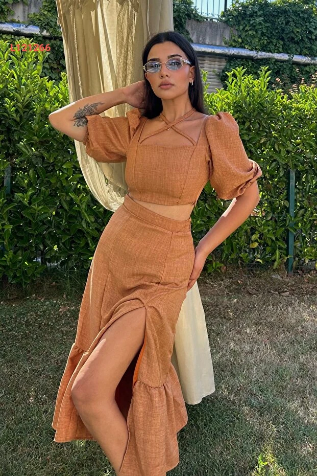 استمتع بإطلالة أنيقة وعصرية مع طقم DİONNA المكون من بلوزة وتنورة مصنوعة من الكتان الفاخر. يمزج هذا الطقم بين الراحة والفخامة، حيث يوفر لك حرية الحركة لمظهر متألق في أي مناسبة. بفضل تصميمه الجذاب والعملي، سيكون خيارك المثالي لإضافة لمسة من الأناقة إلى خزانة ملابسك.