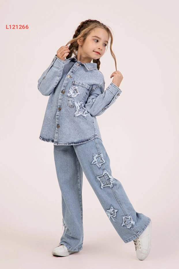 استمتع بإطلالة عصرية ومريحة مع بنطال جينز DMB للأطفال من الفتيات والفتيان، المصنوع من قماش جينز مريح ولين بلون أزرق جذاب. يتميز بنمطه العالي وفتحة الساق الواسعة مع تطريز النجوم الرائع، مما يجعله الخيار المثالي لإطلالة مبهجة ومليئة بالأسلوب. مثالي للأيام النشيطة، حيث يجمع بين الأناقة والراحة في كل حركة.