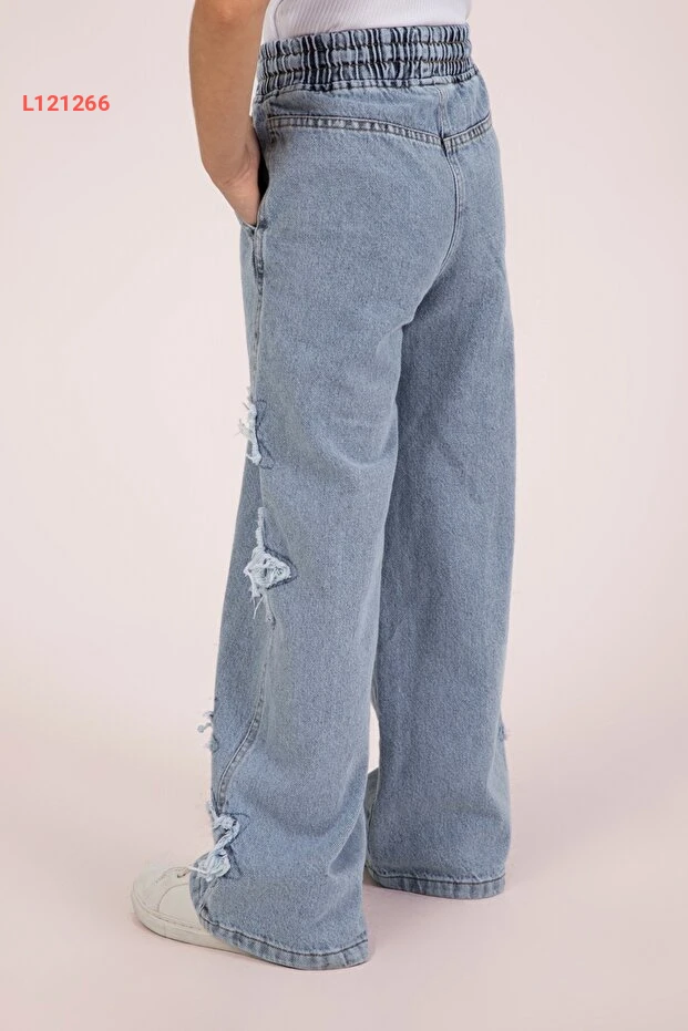 بنطلون جينز أطفال للبنات بتصميم نجوم مميز - عالي الخصر وواسع - 8-9 سنوات