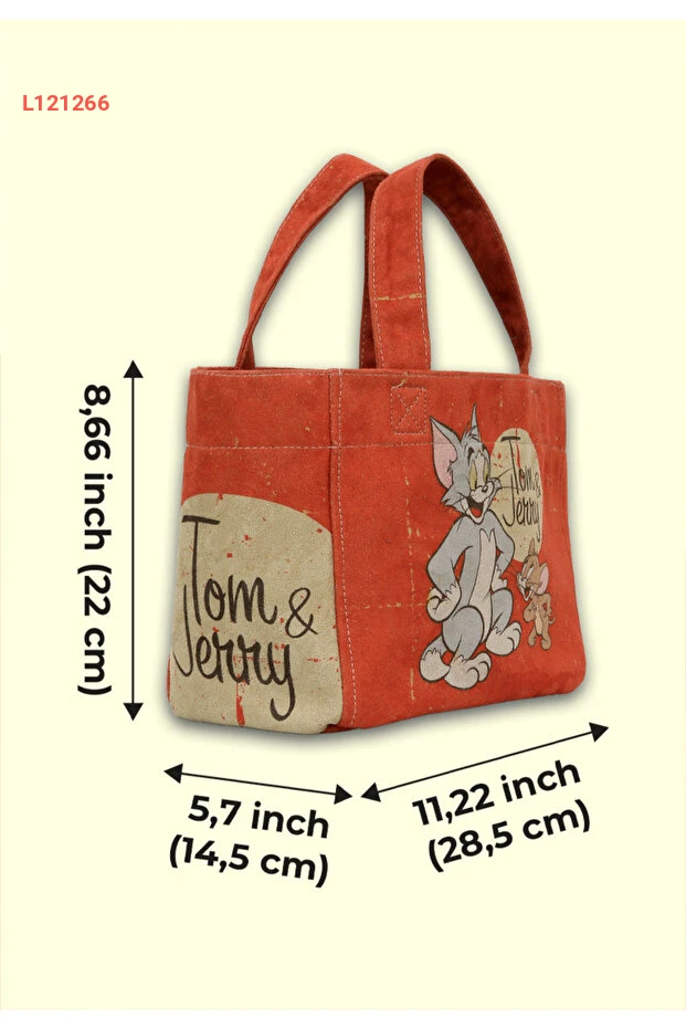 حقيبة توت متوسطة نسائية فيغان برتقالية تصميم توم وجيري من وارنر براذرز
