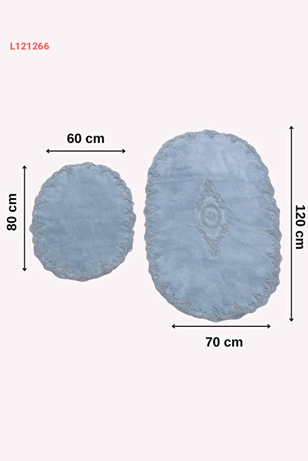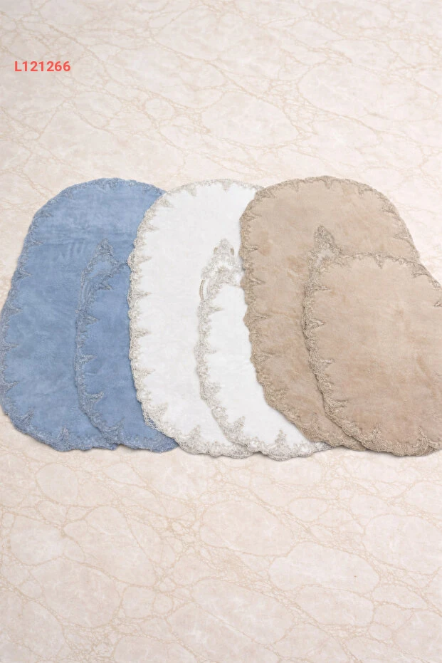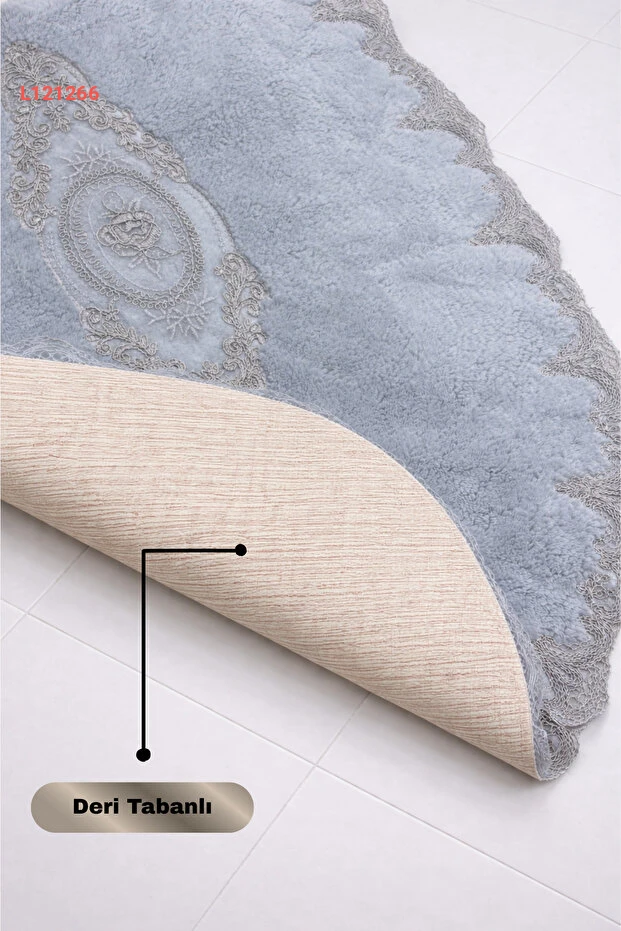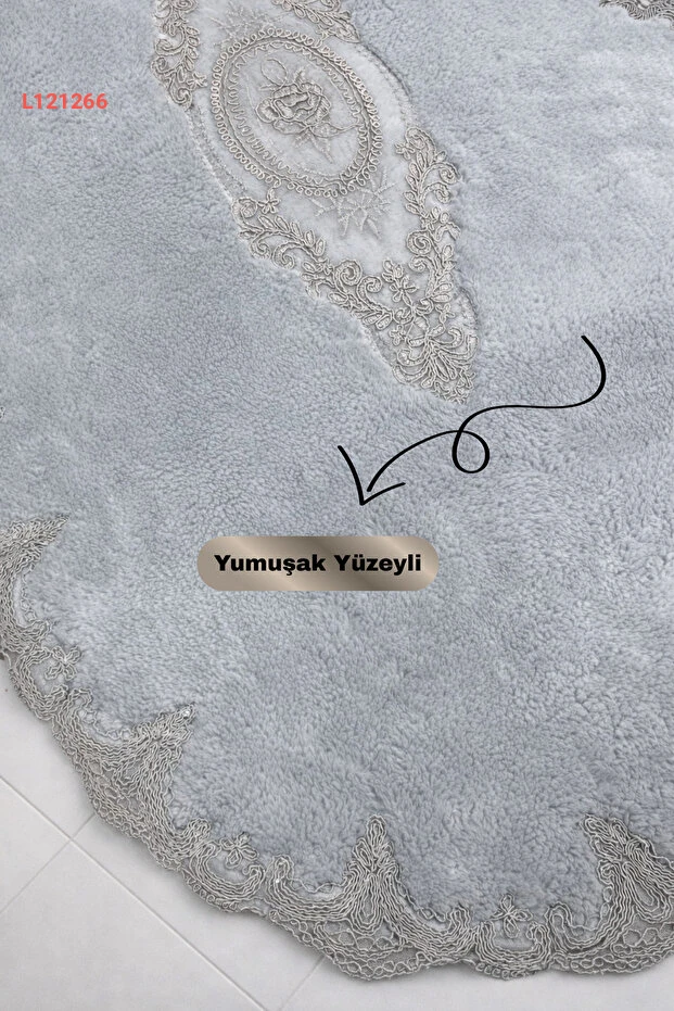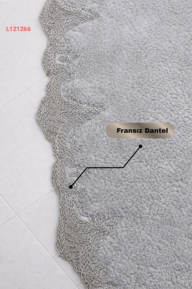 طقم بساط الحمام الفاخر من دوكوماتشي أوغلو - رمادي مع دانتيل فرنسي وقاعدة غير منزلقة