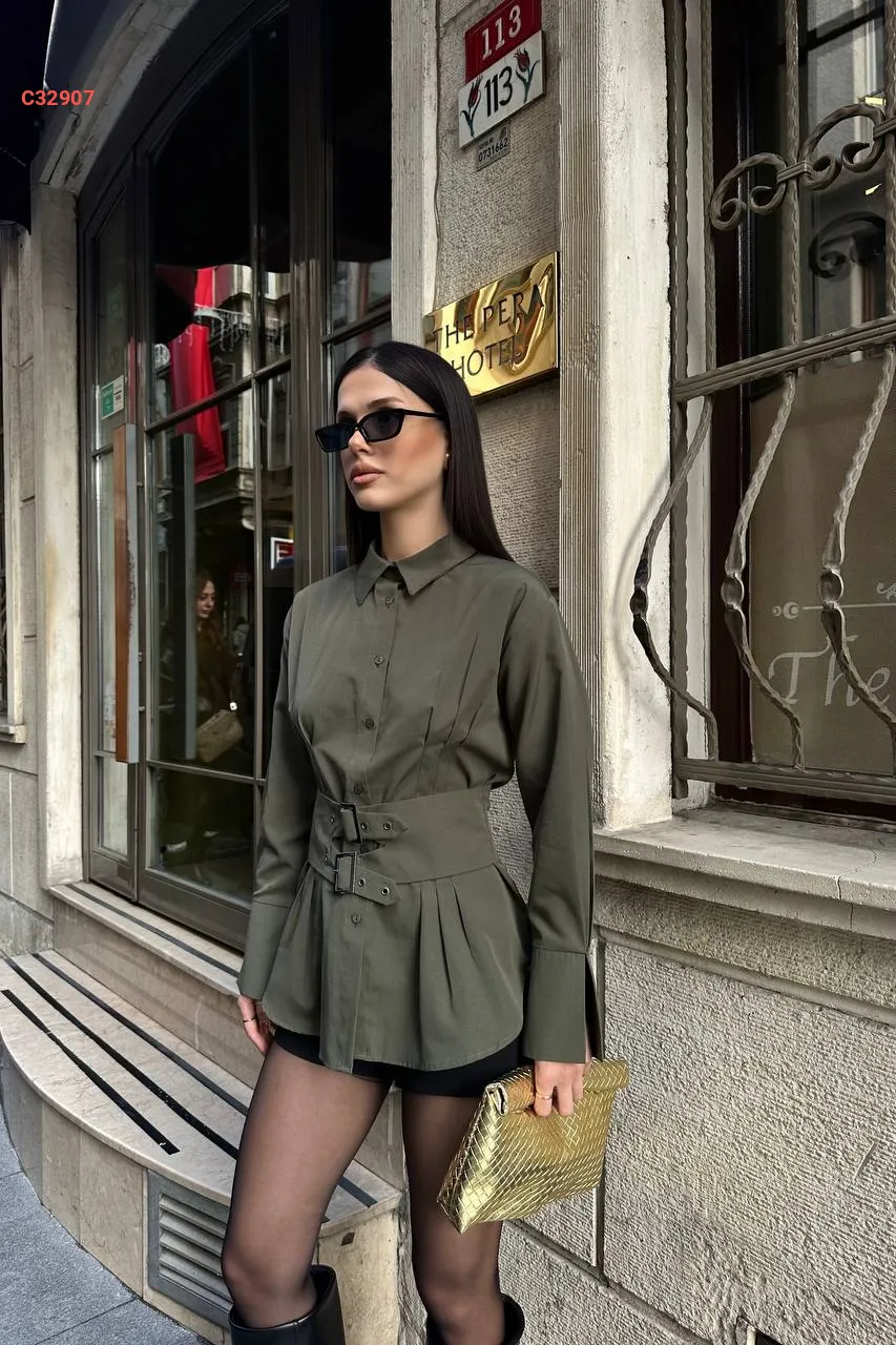 قميص بحزام مزدوج