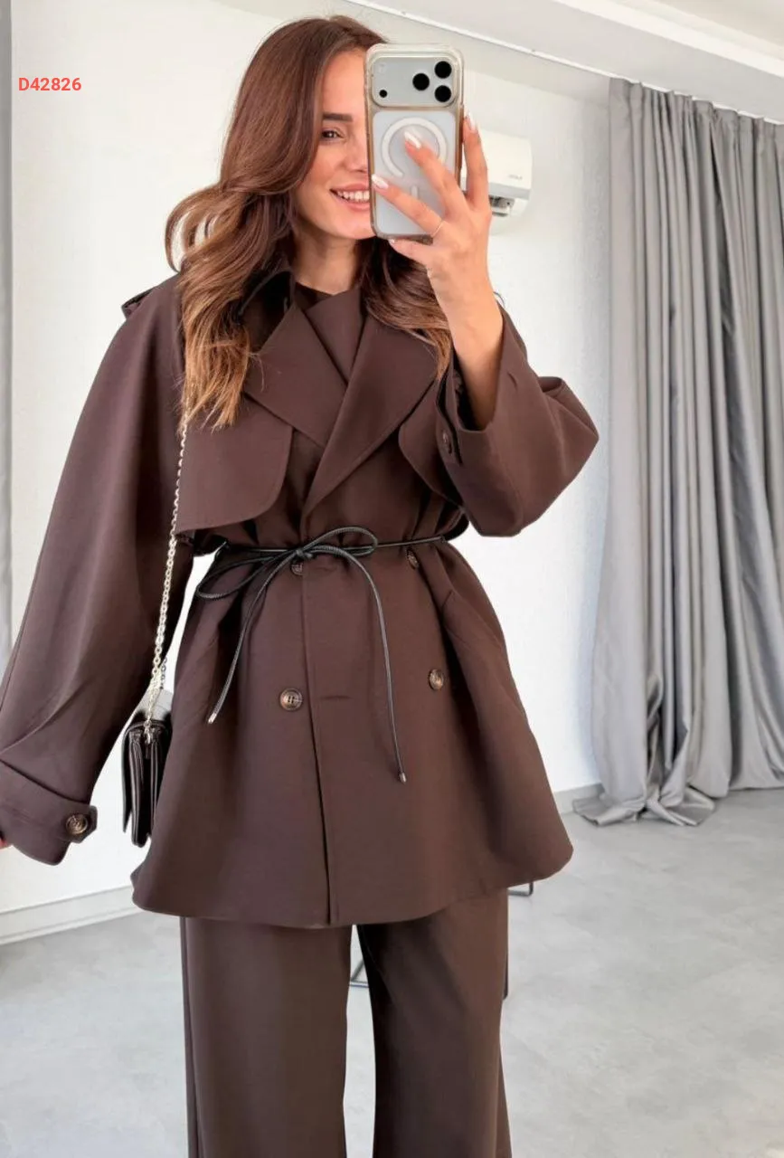 جاكيت بأزرار مزدوجة مع حزام جلد