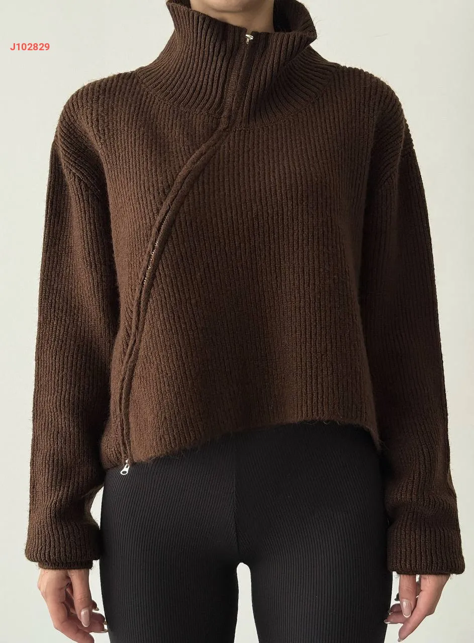 كنزة تريكو بسحاب مزدوج مائل