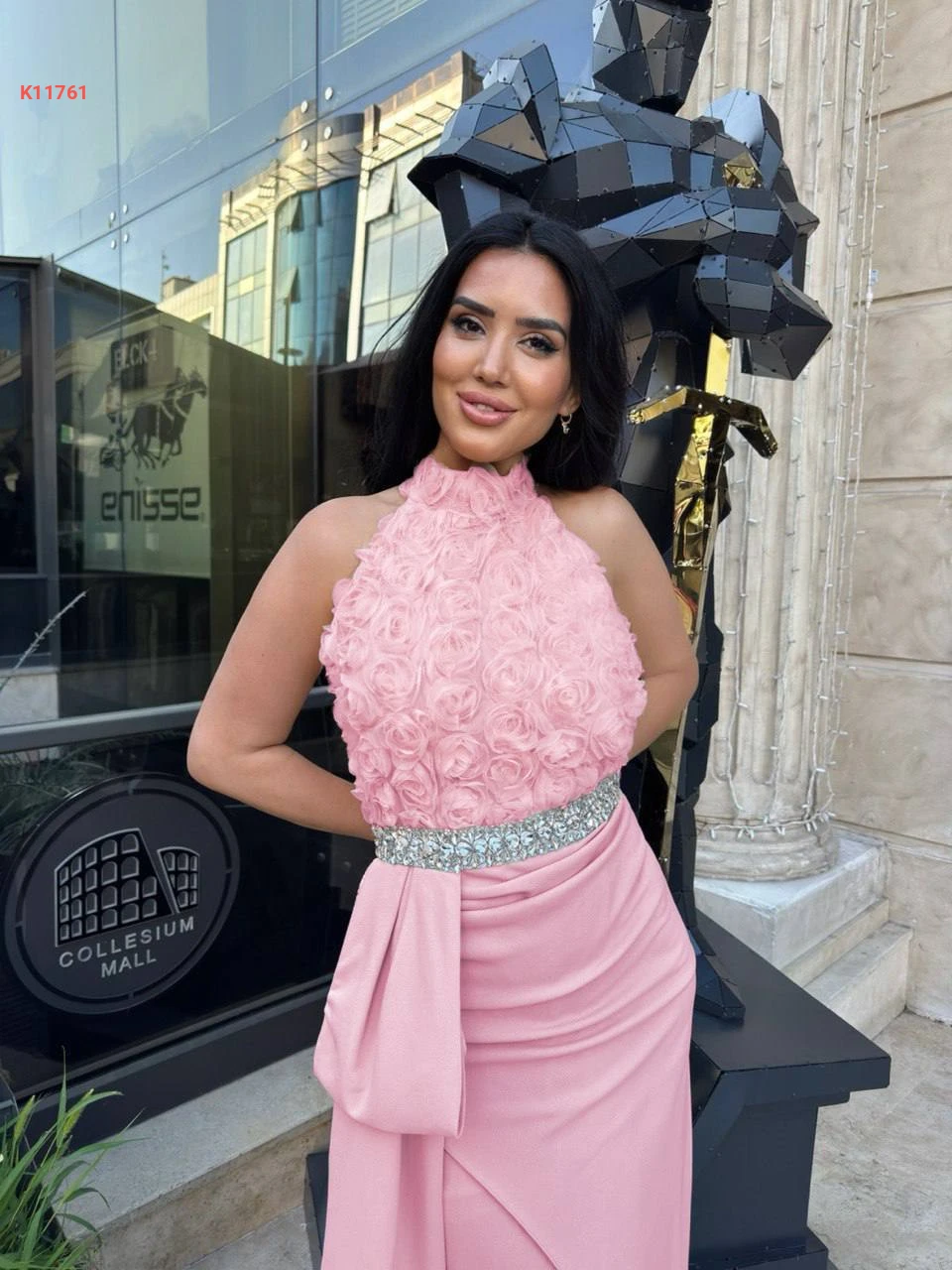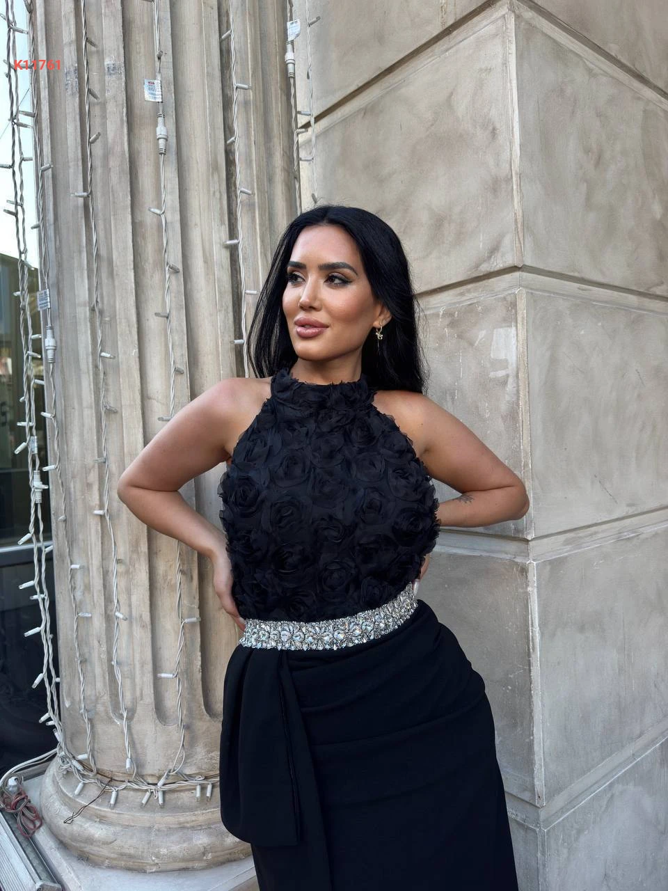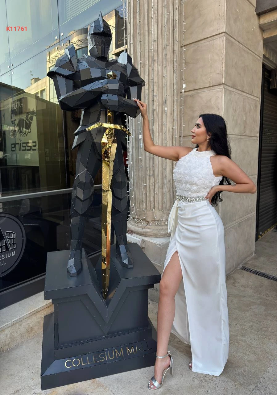 فستان مزين ورد مع أحجار كريستال