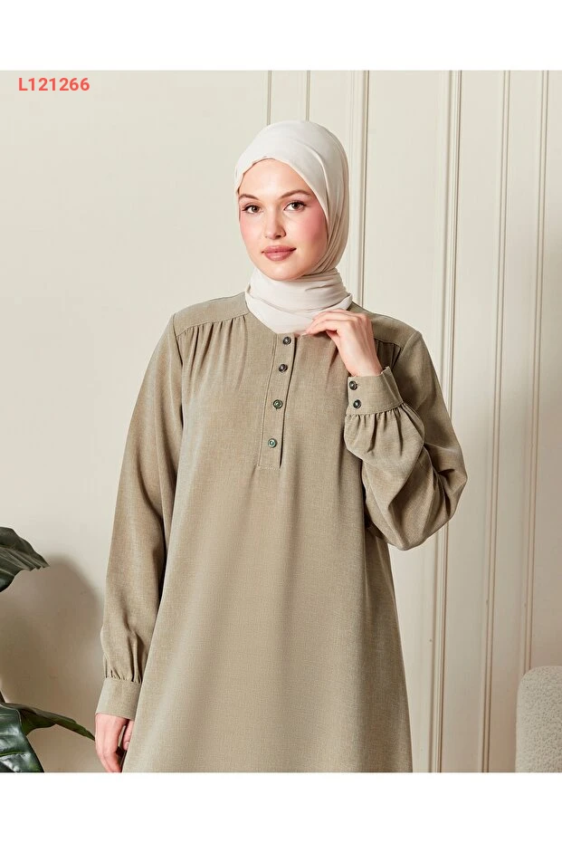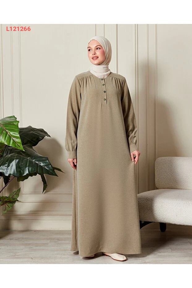 فستان كريب فضفاض مزين بأزرار للأمهات والتسبيح