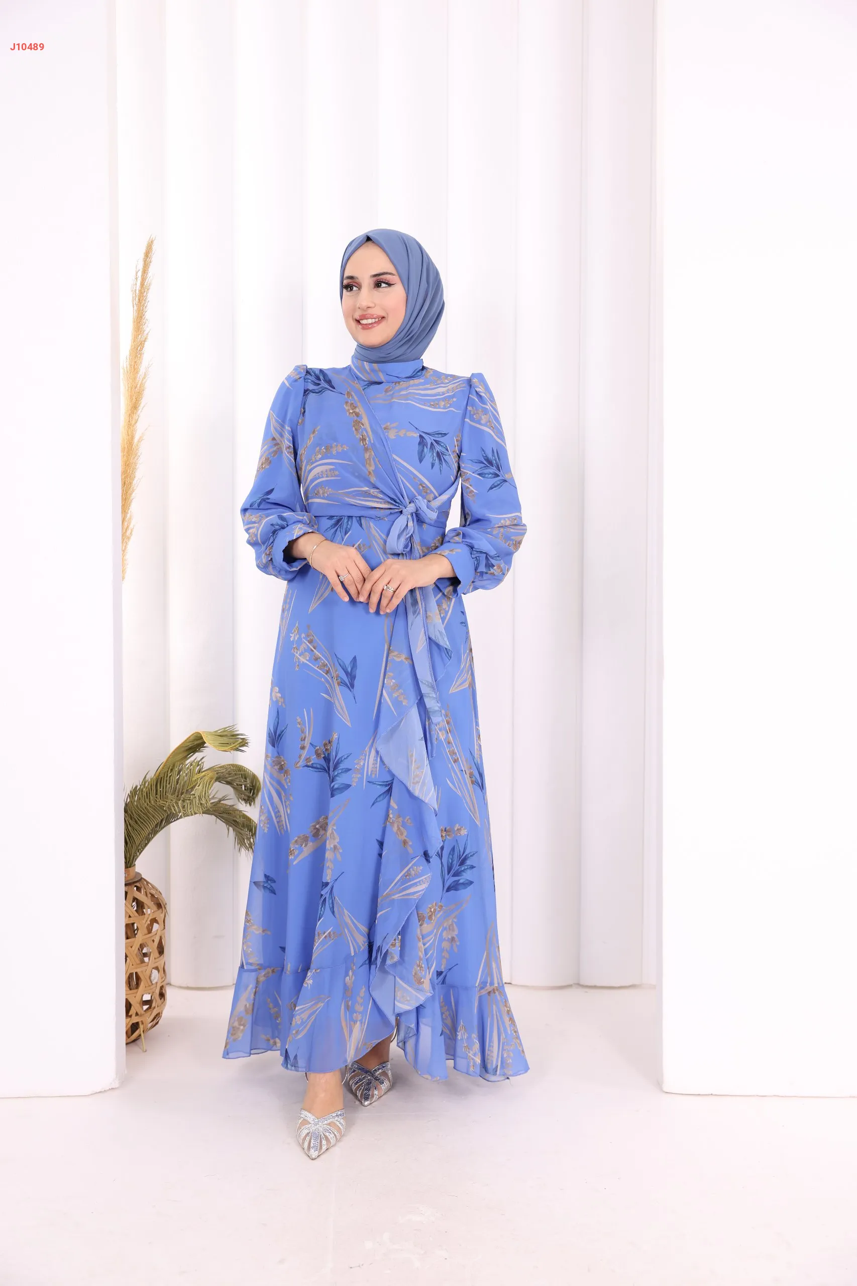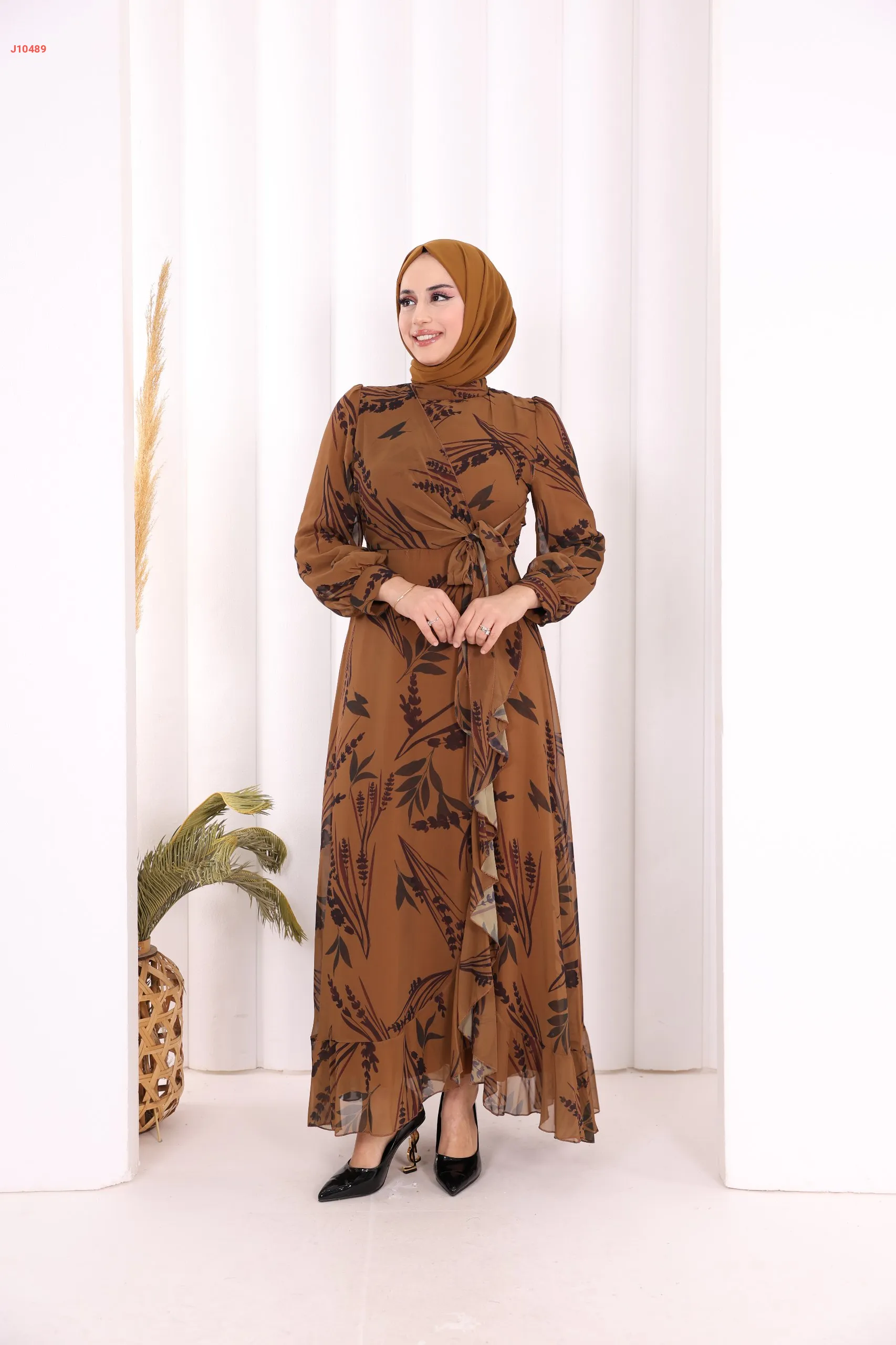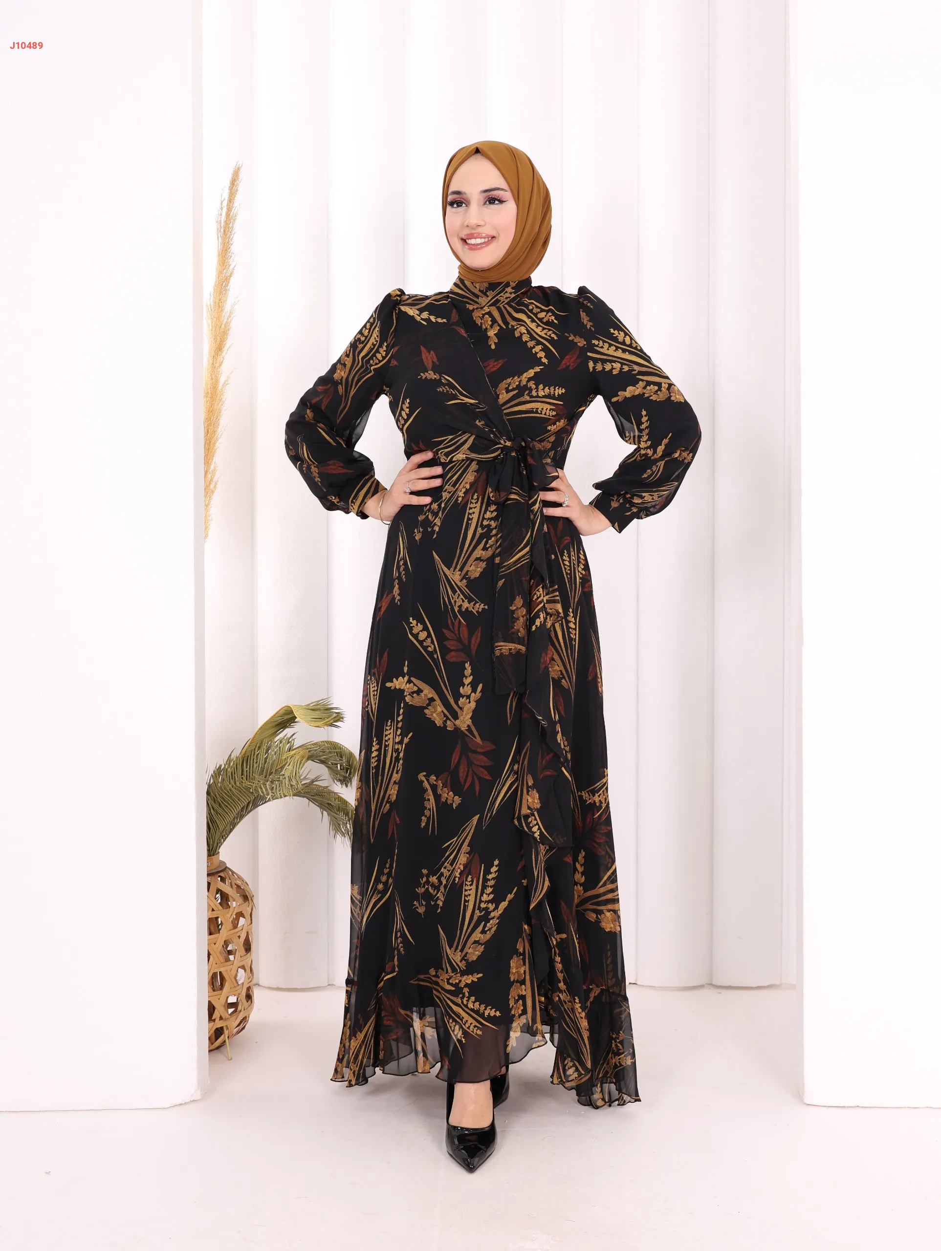 فستان معرق، مع ربطة خصر