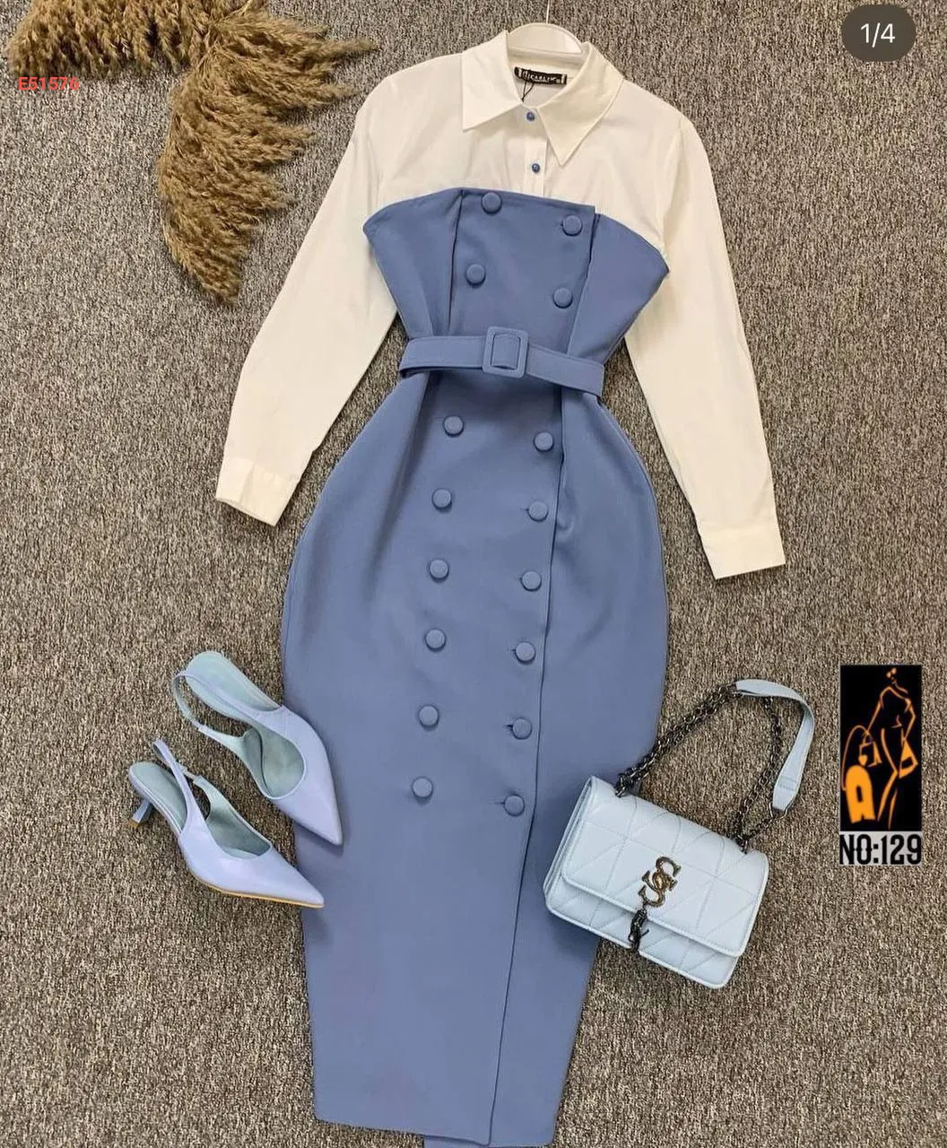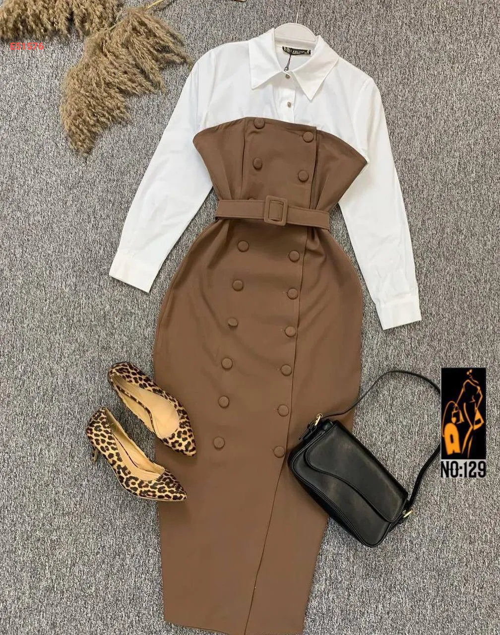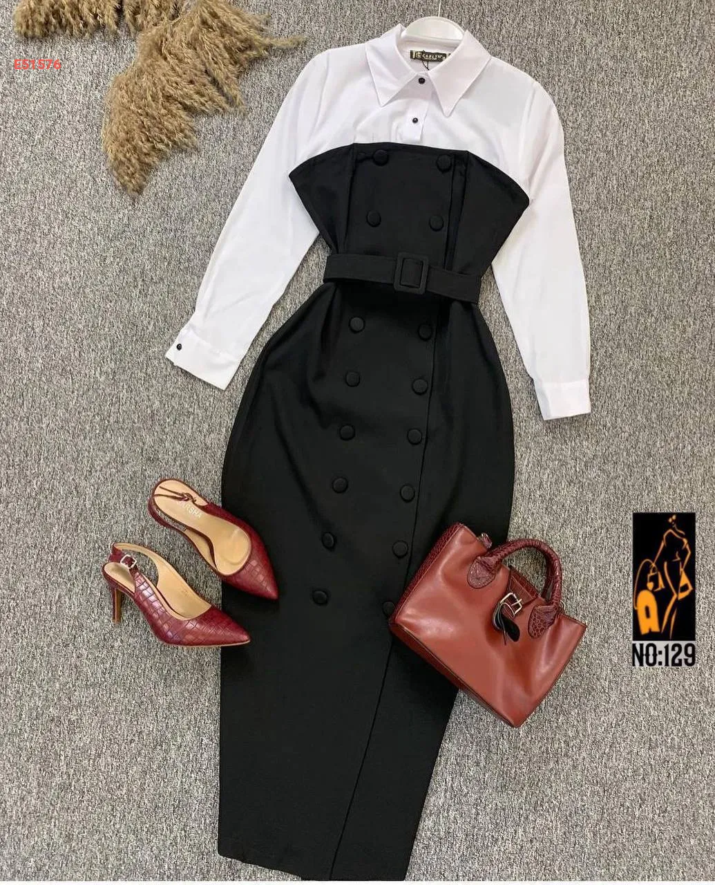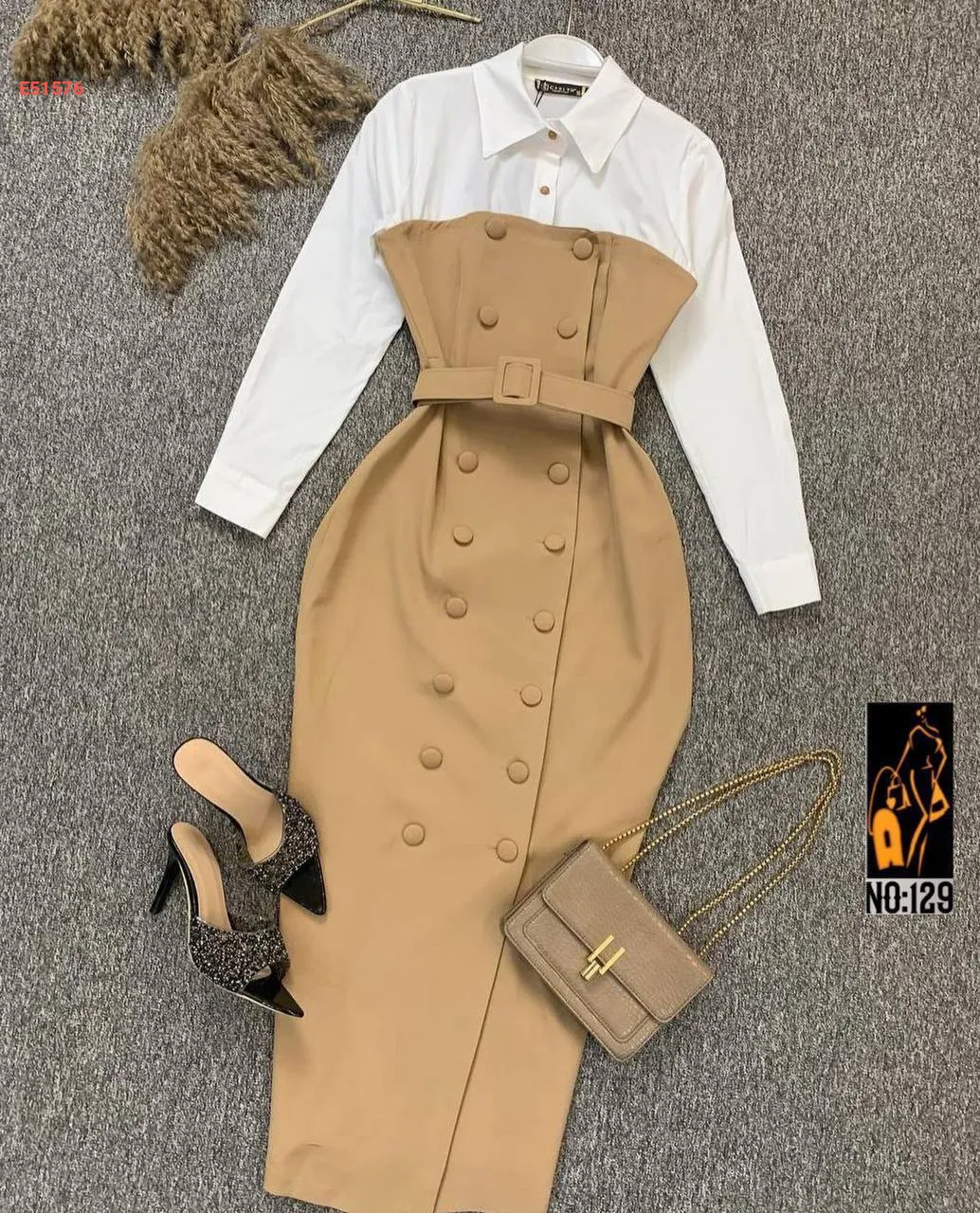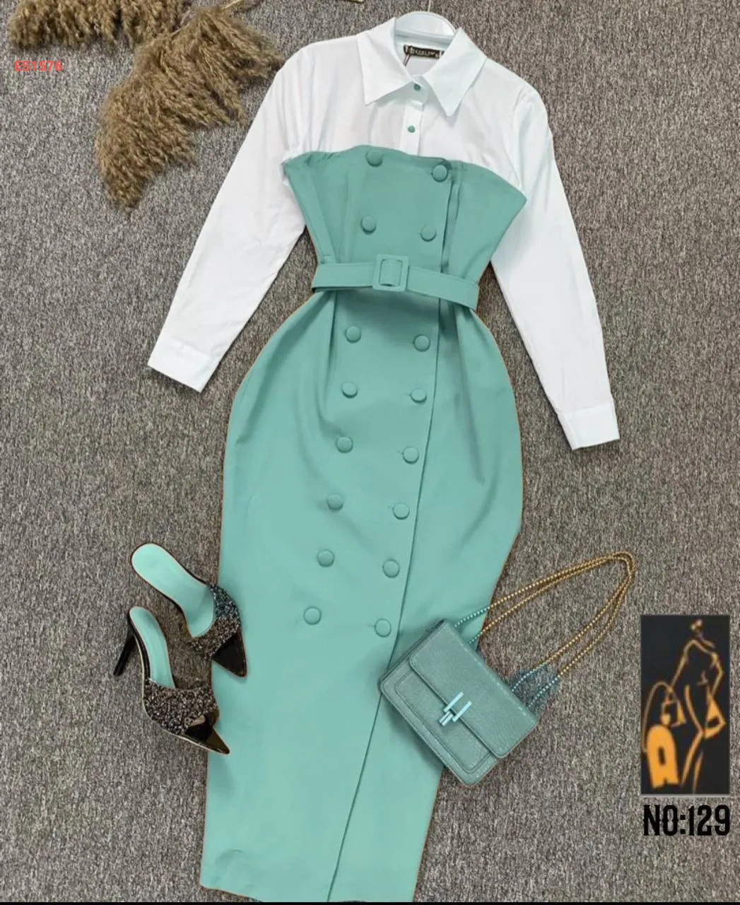 Yeni model 🤩🤩. 38/40/42/44/46/48. $🔥🔥🔥. فستان فتح زرار مع كمر القماش دبل iki lı takım.