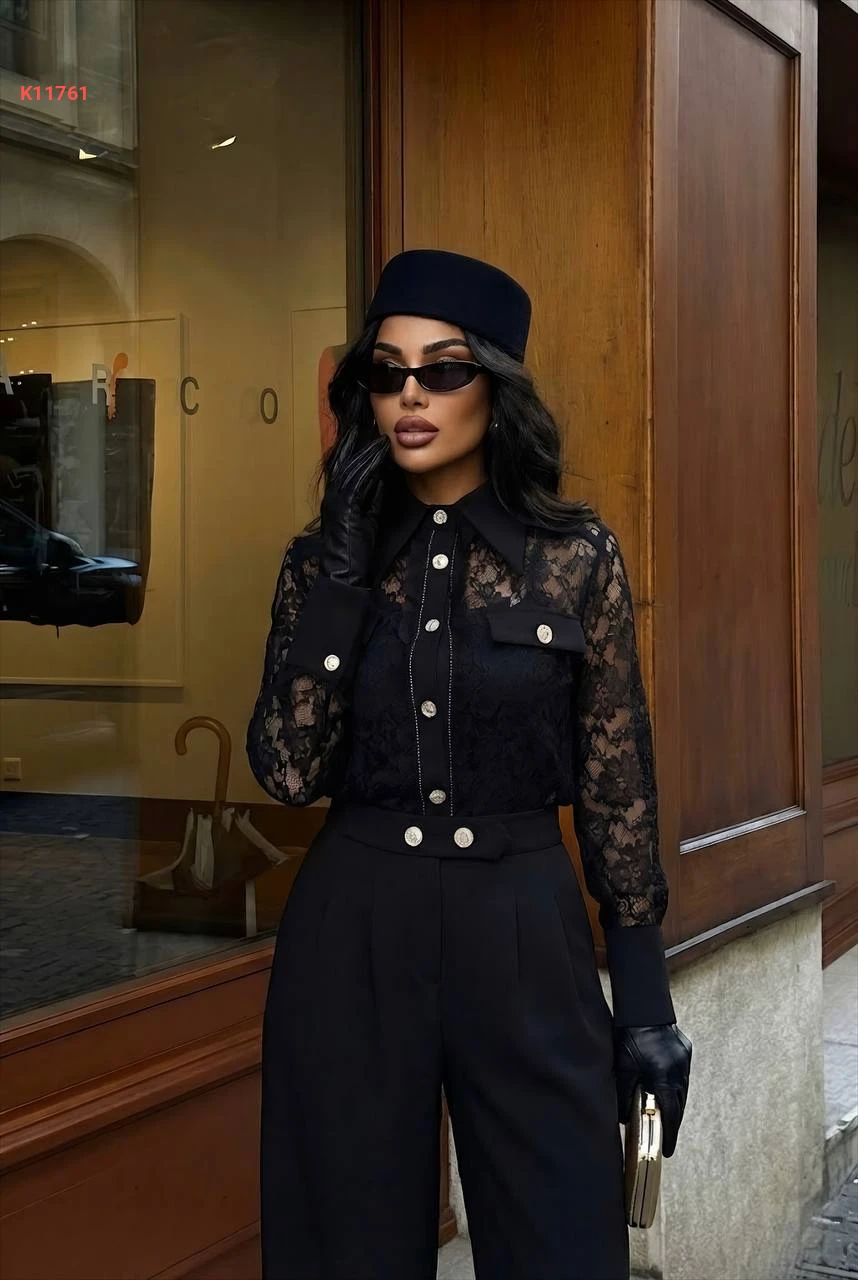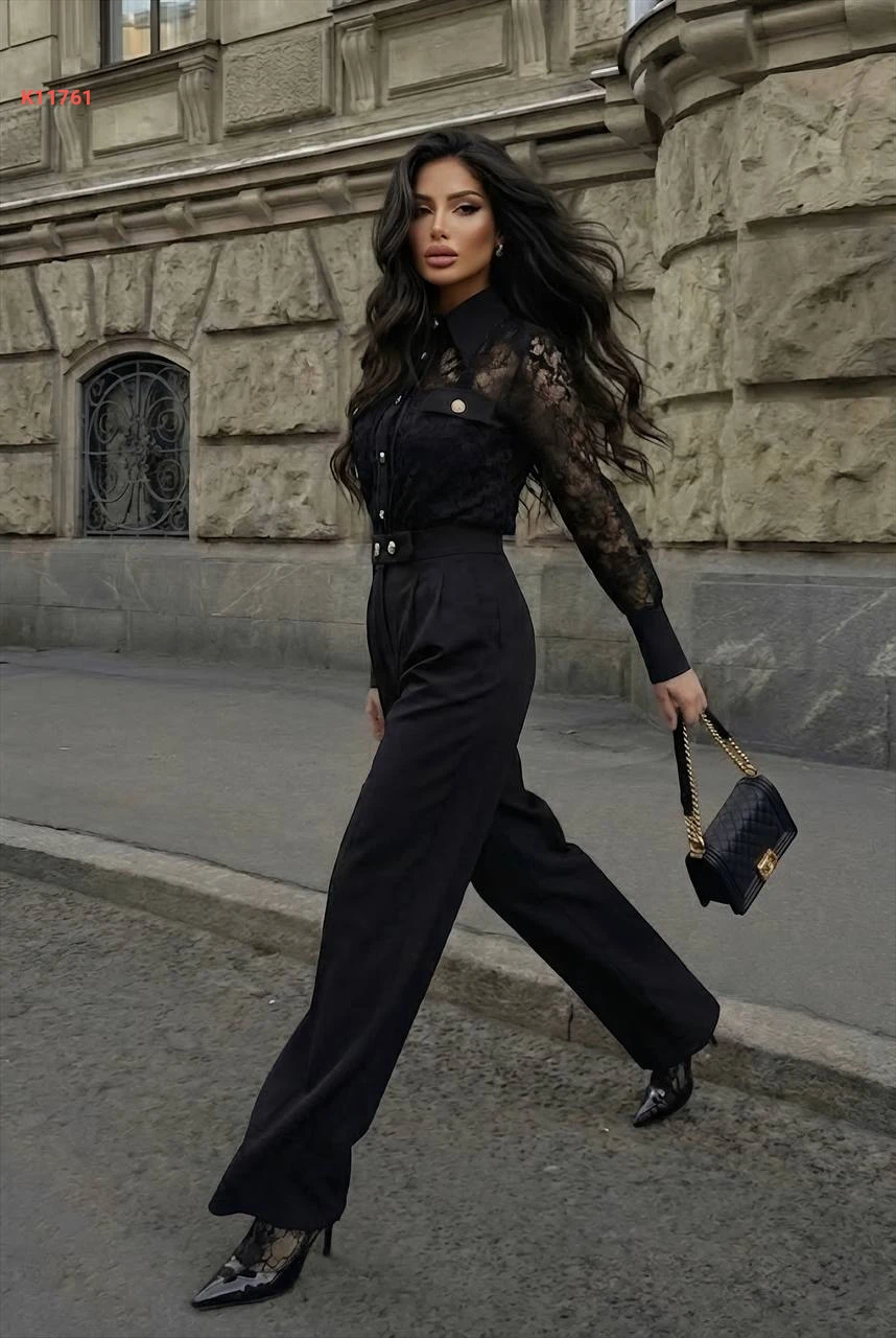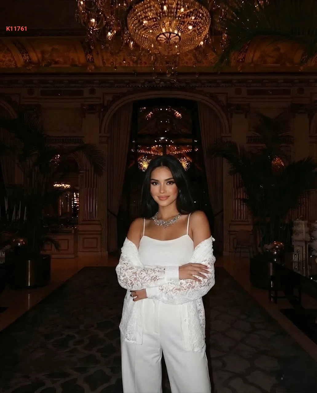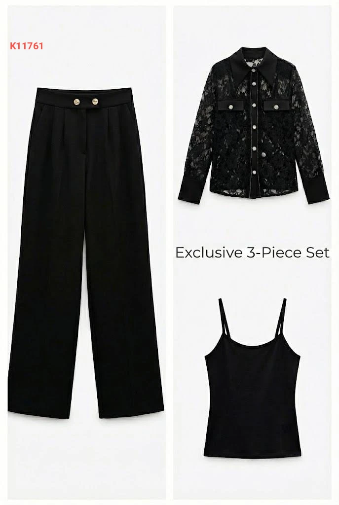 فستان طقم بنطال وبلوزة حفر وقميص دانتيل