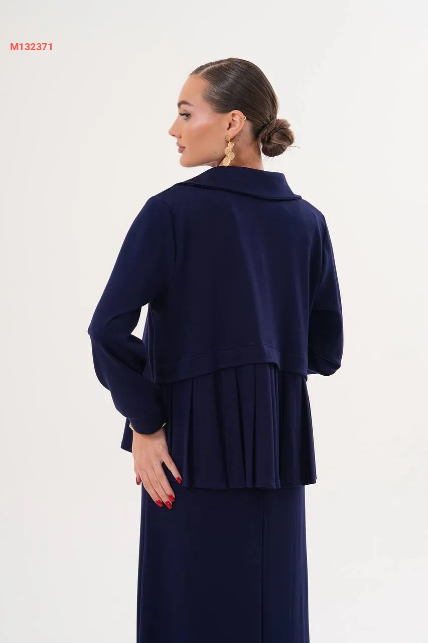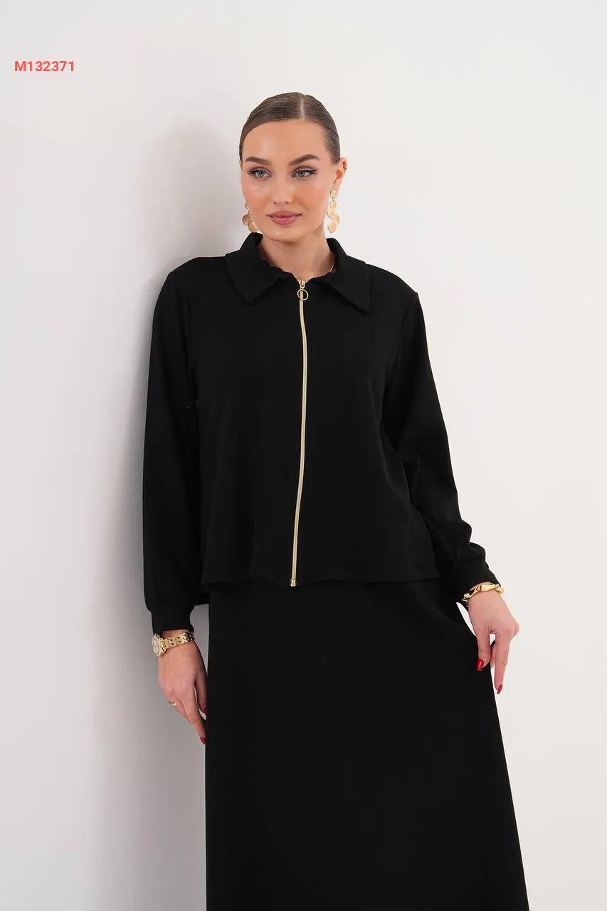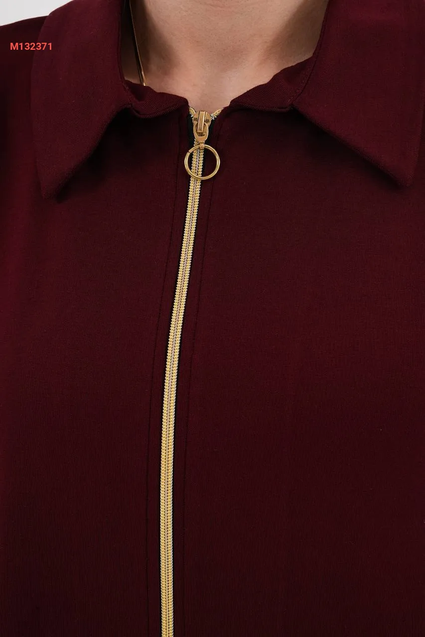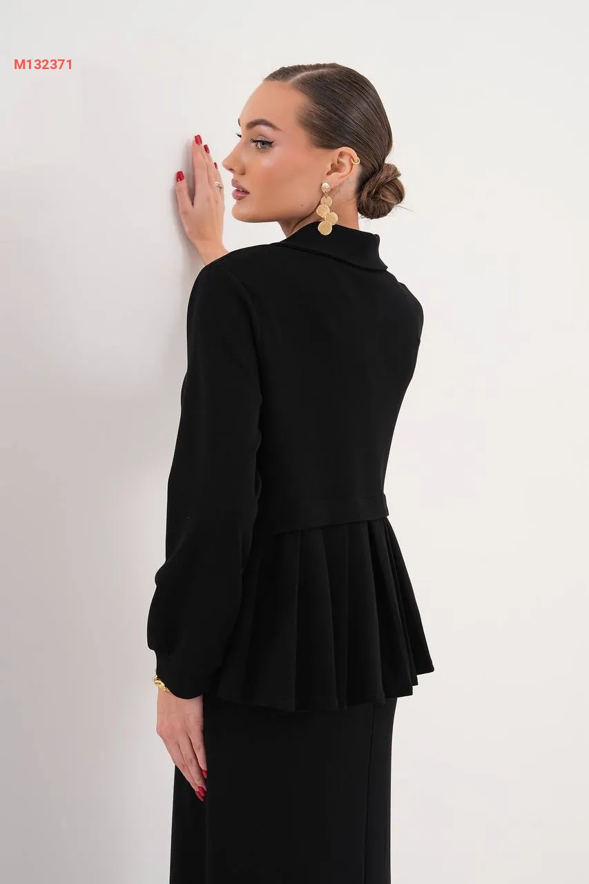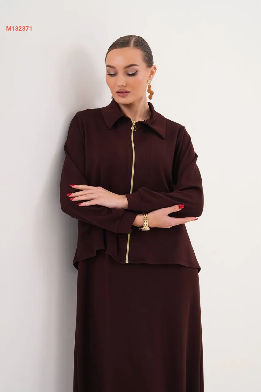 طقم فستان سادة قطعتين جاكيت بسحاب مع موديل كسرات أسفل الظهر