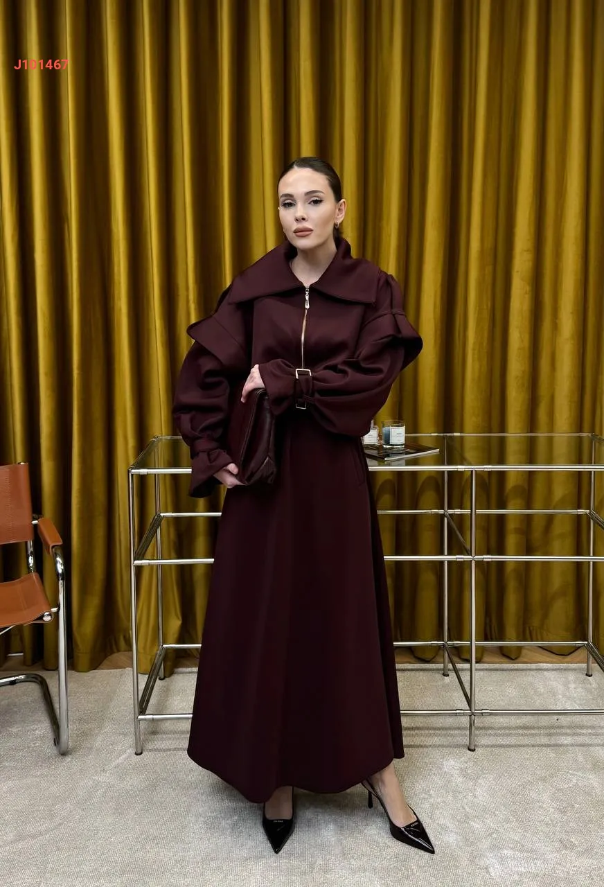 ICONIC SERIES DROP-2SORELLE FERMUARLI KOL ALLERLI ELBİSE Ürün Kodu: 8045Ürün Serisi: 1/2