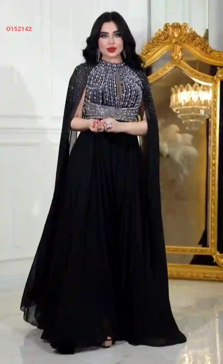 فستان بشاحط موصول عالكتف مزين أحجار ستراس