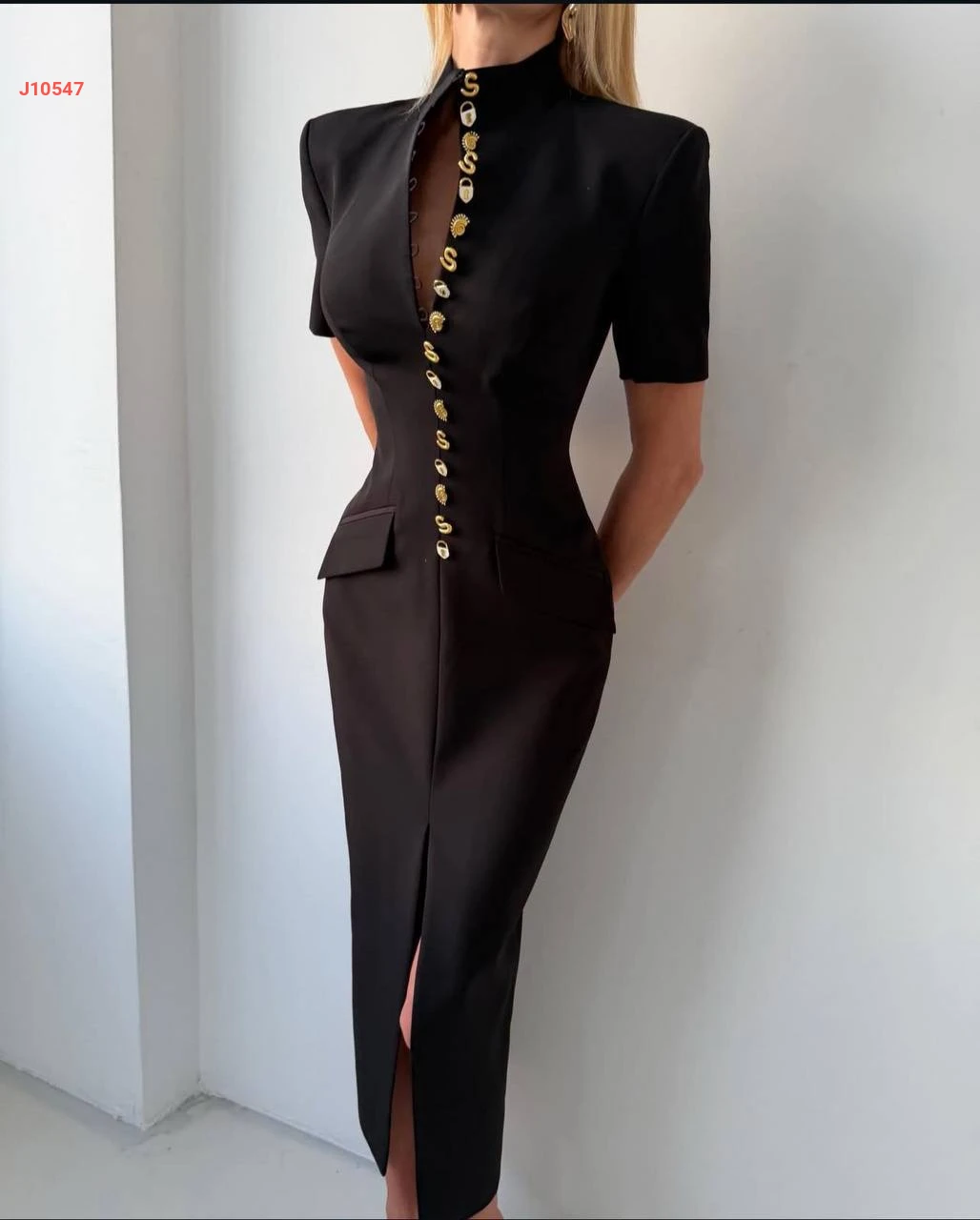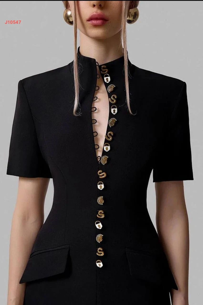 فستان بأزرار اكسسوار دهبي