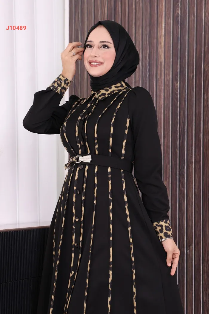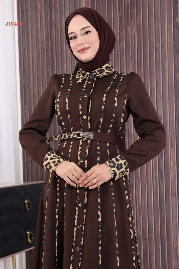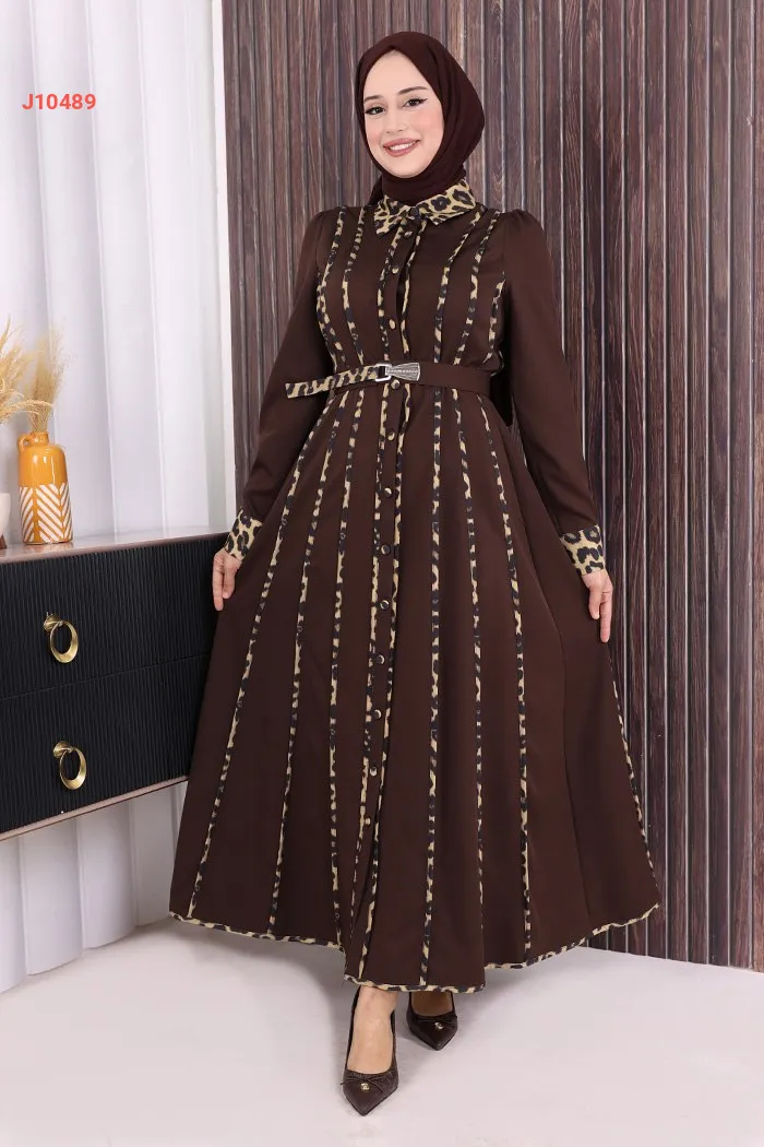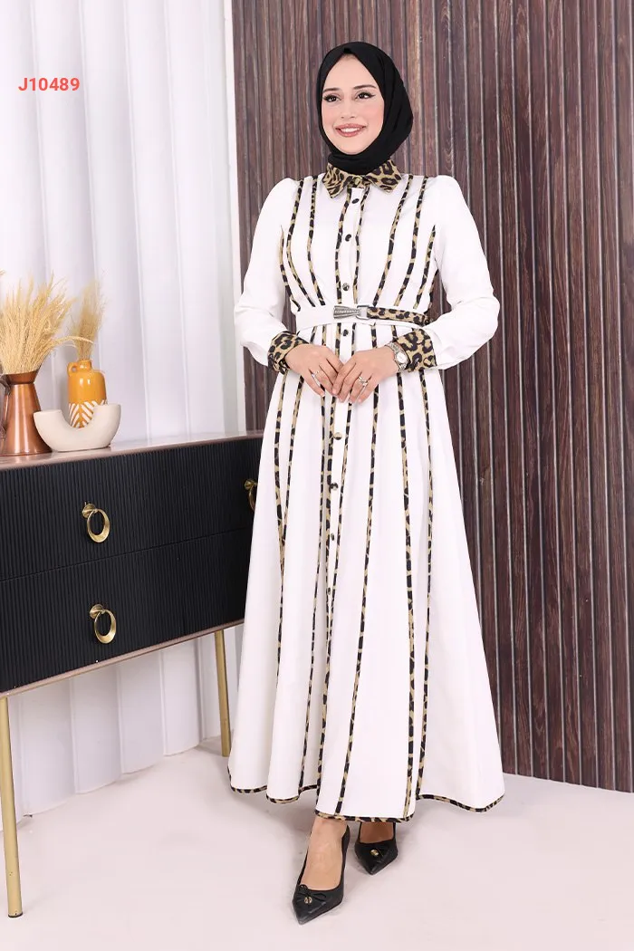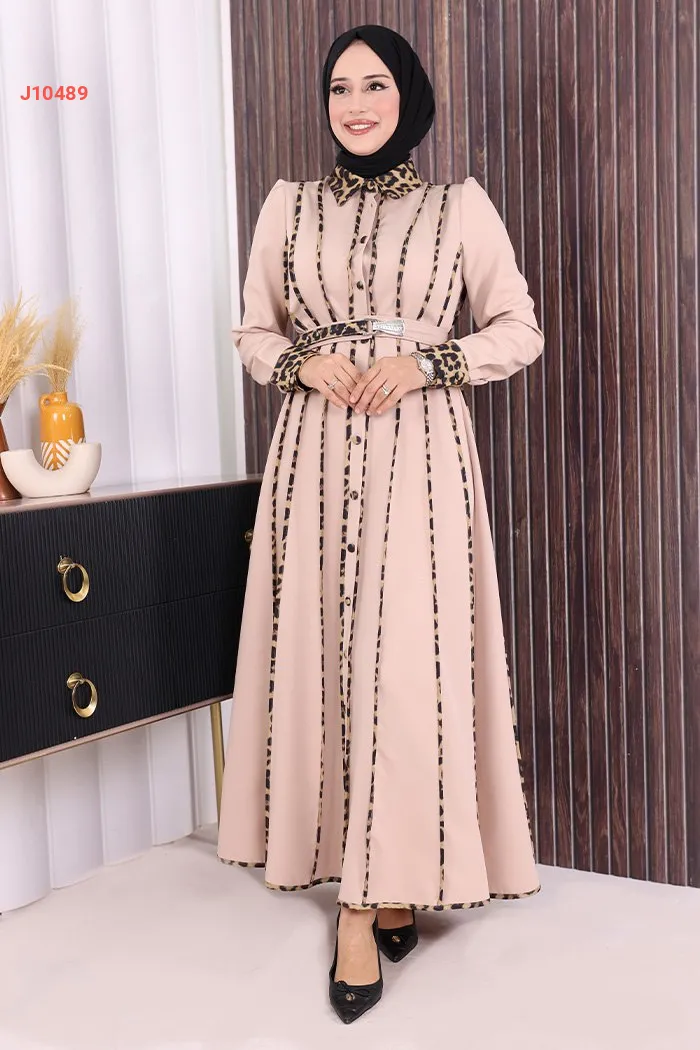 فستان أزرار ، بكسرات مع حزام ، بقبة قميص
