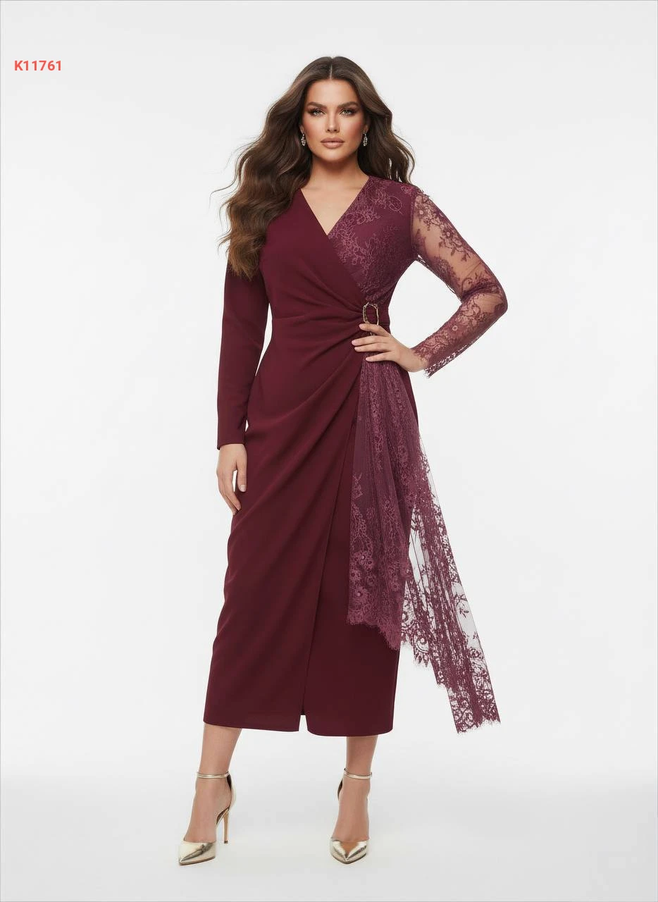 فستان بتفاصيل دانتيل وإبزيم جانبي