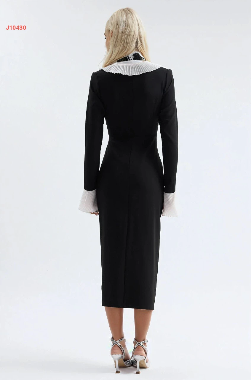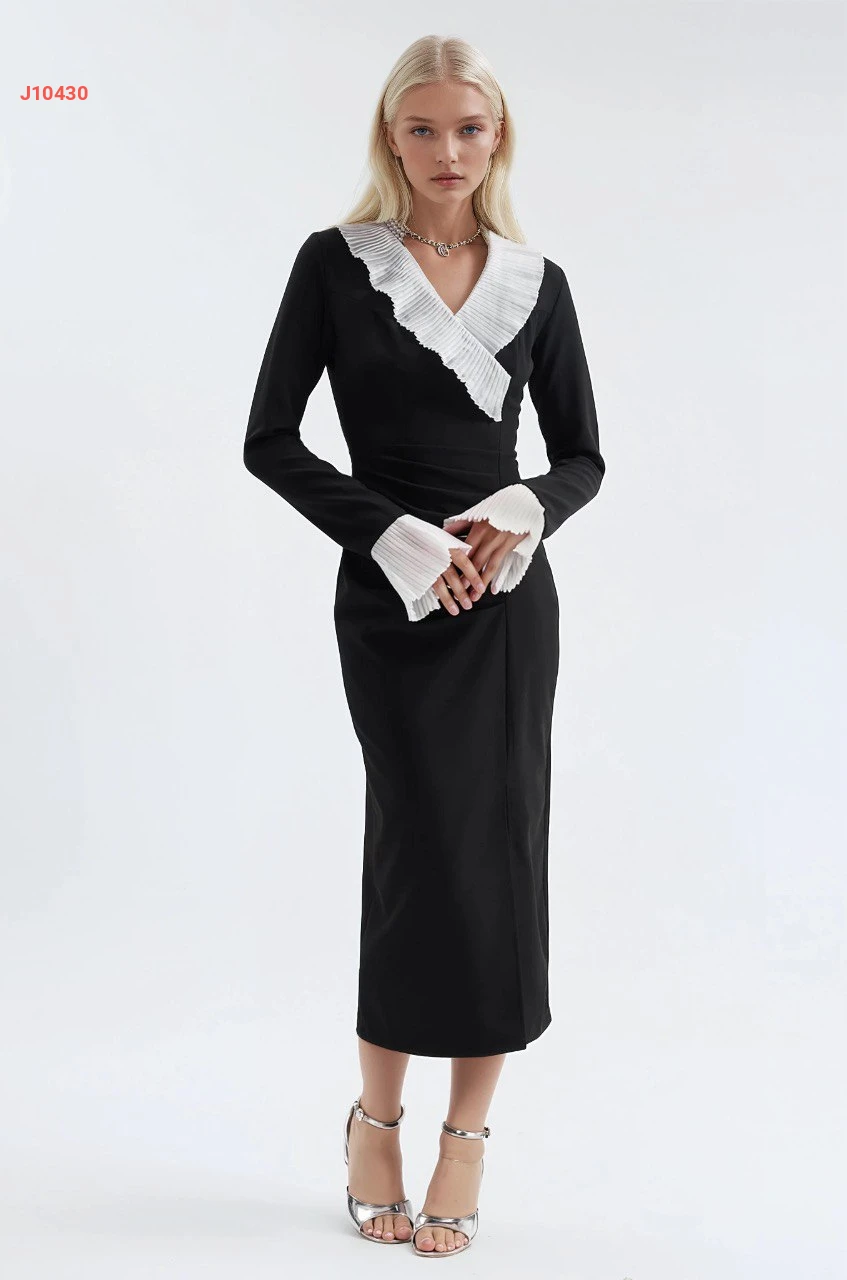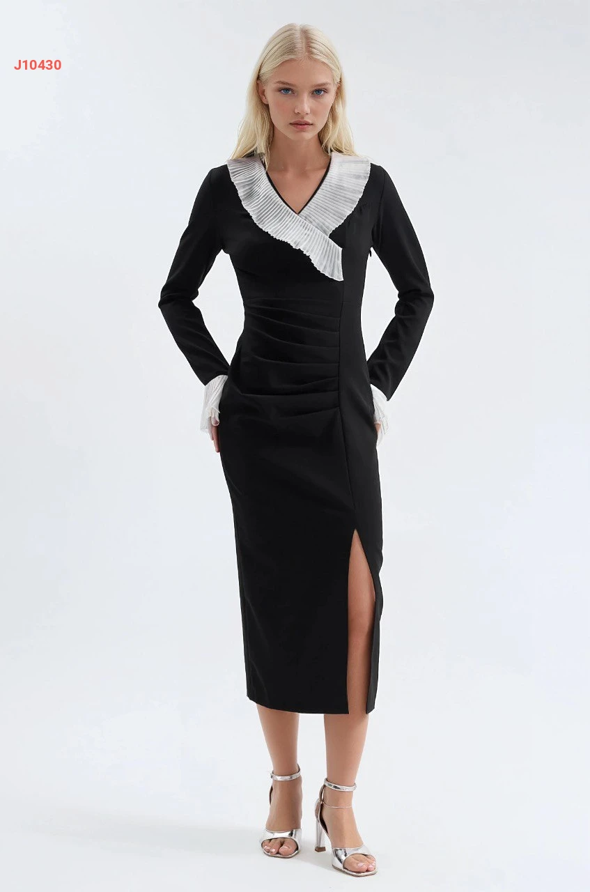 فستان بتفاصيل بليسيه عالصدر والأكمام