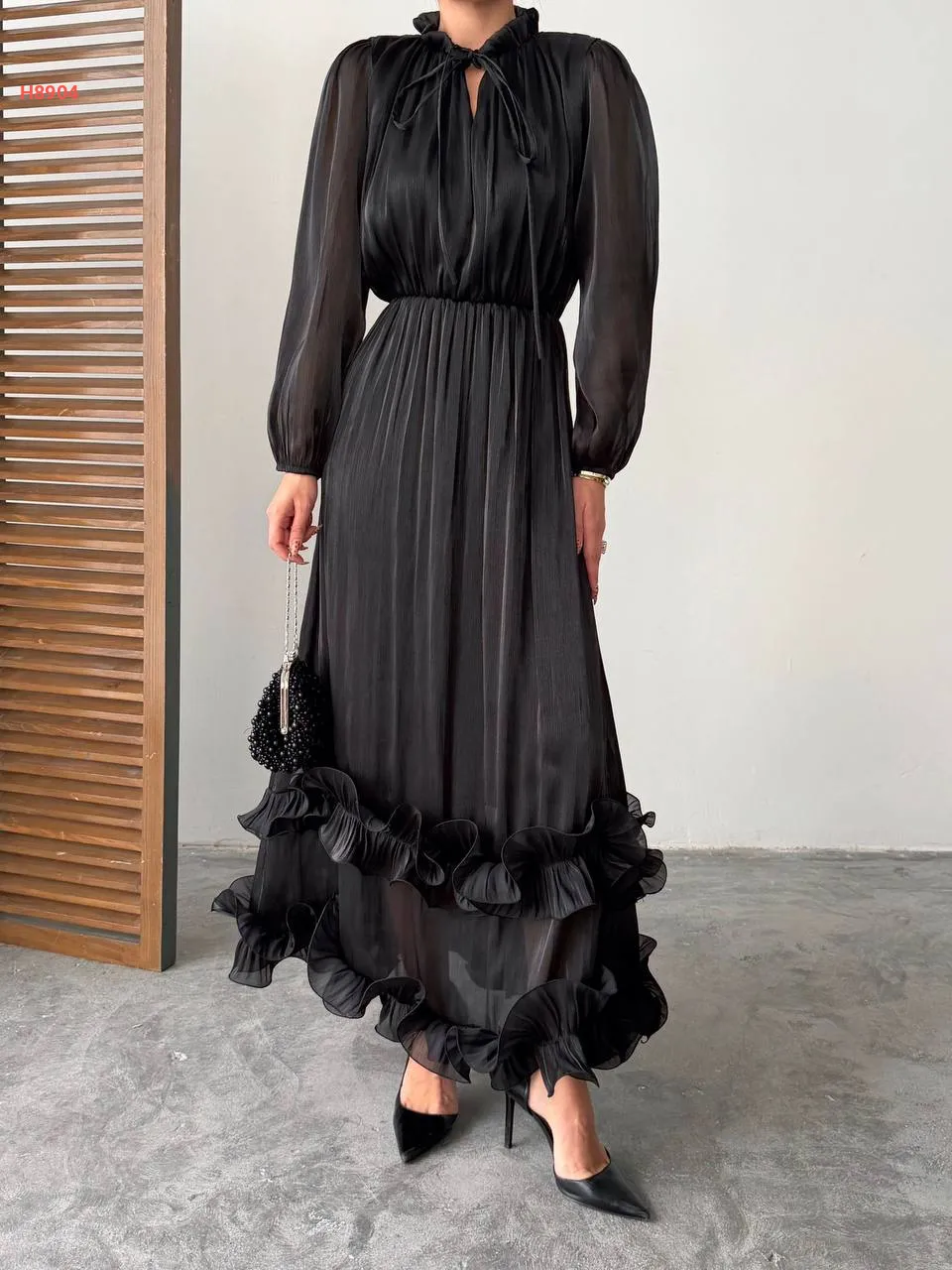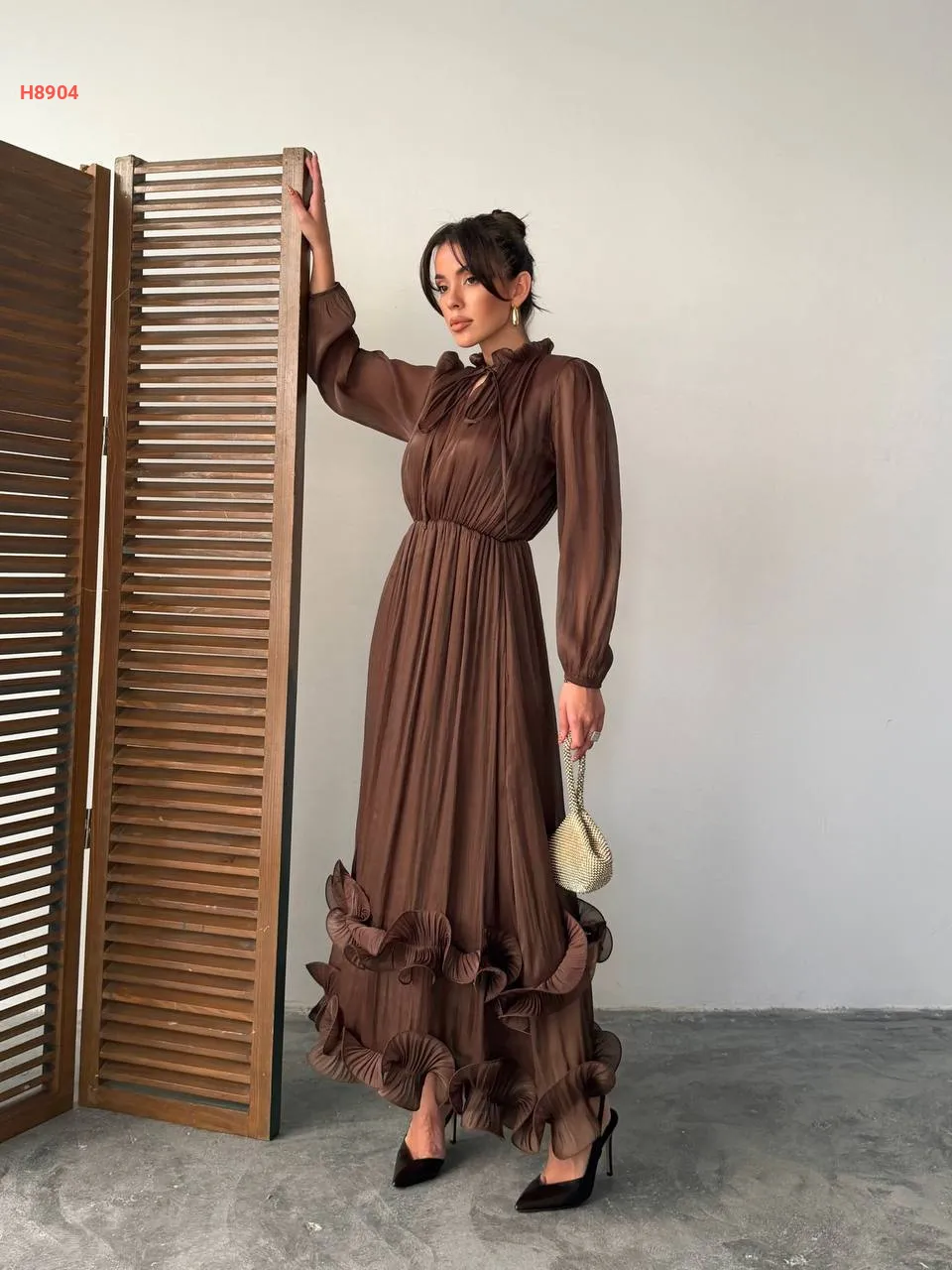 فستان بتفاصيل كشكش وربطة عالرقبة