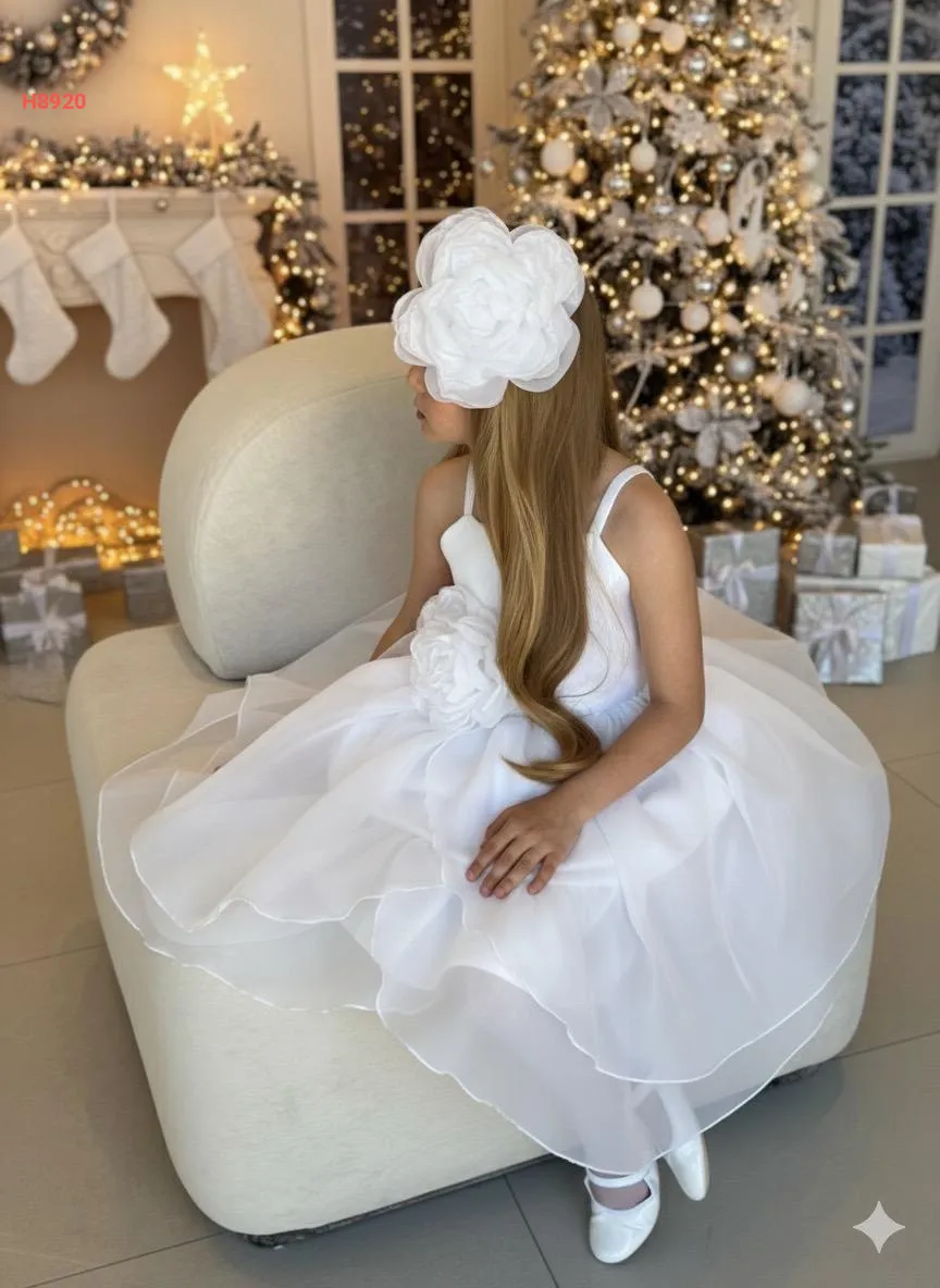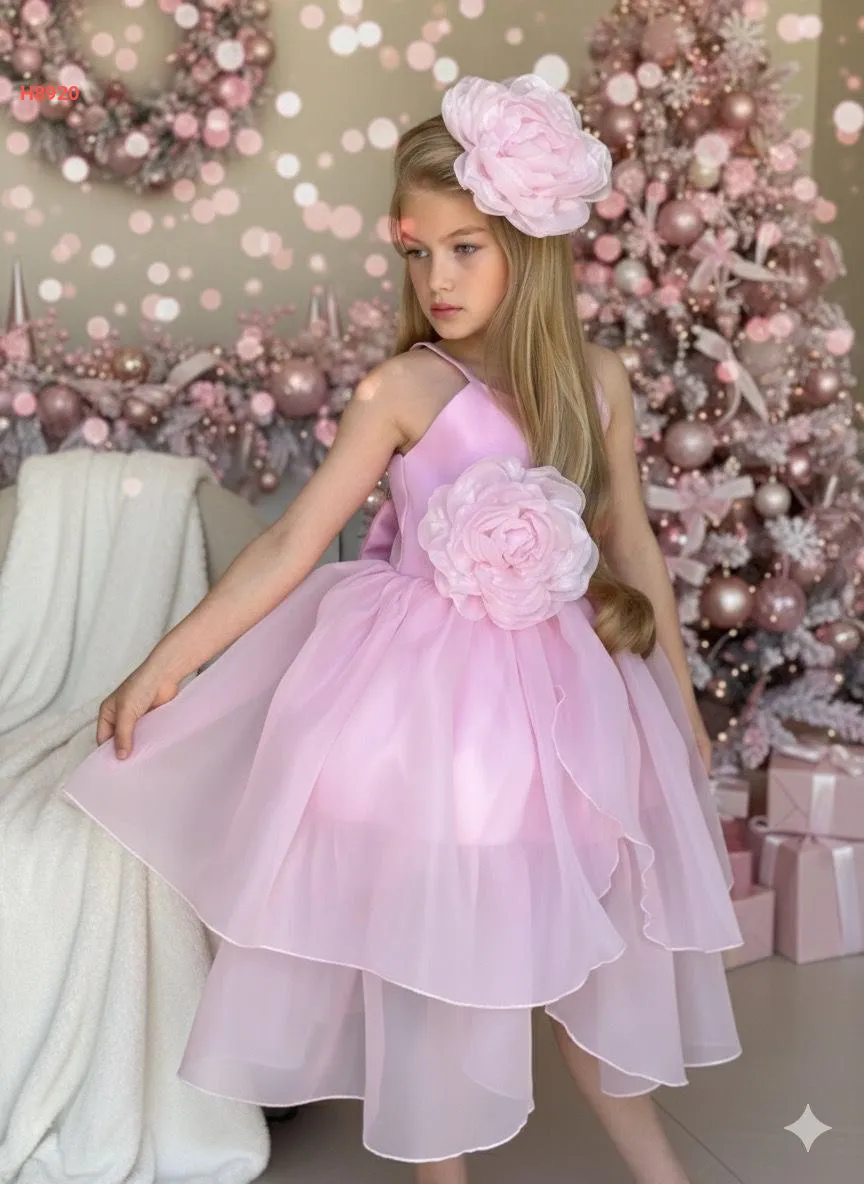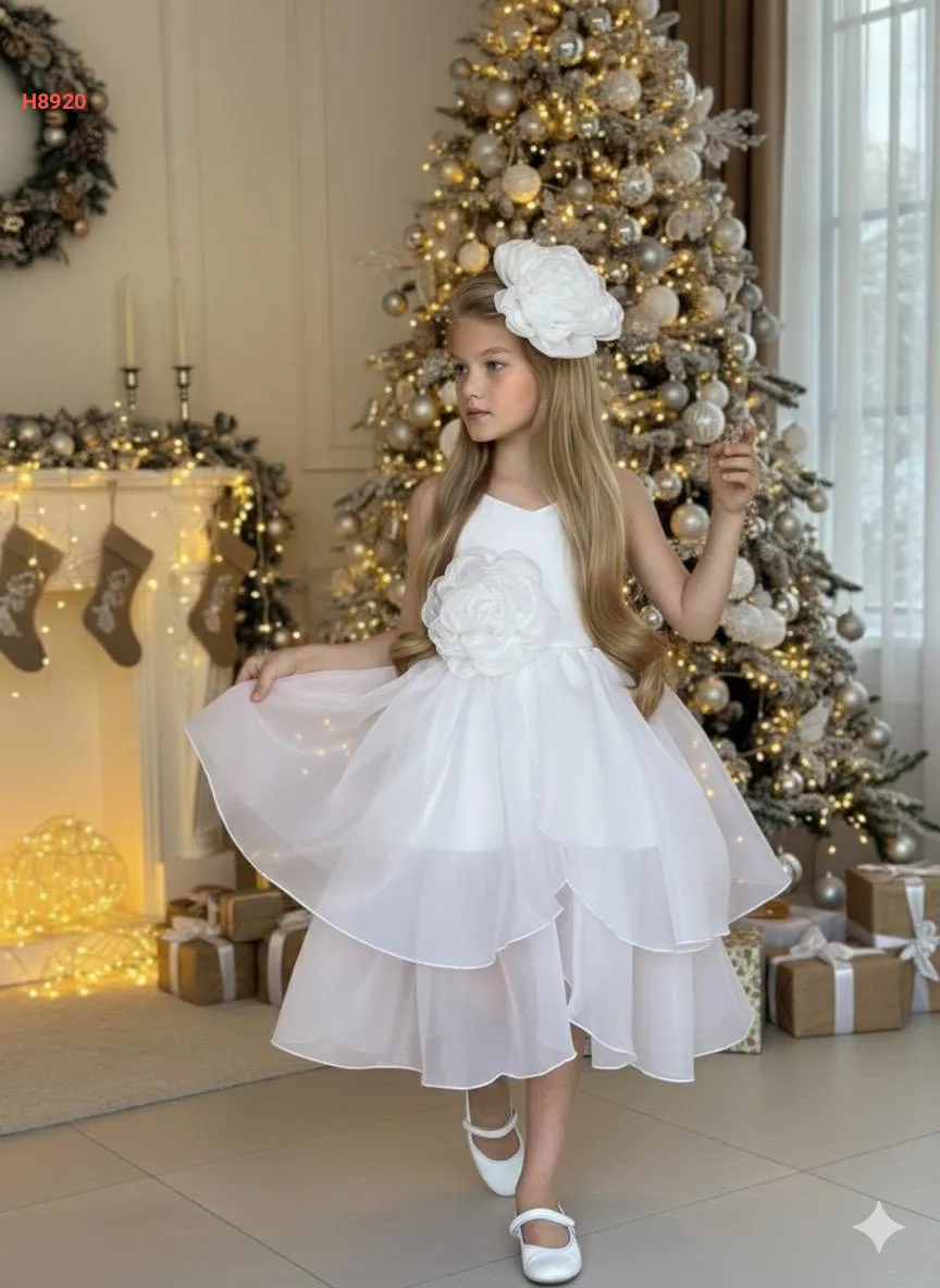 فستان بناتي كشكش مزين بوردة