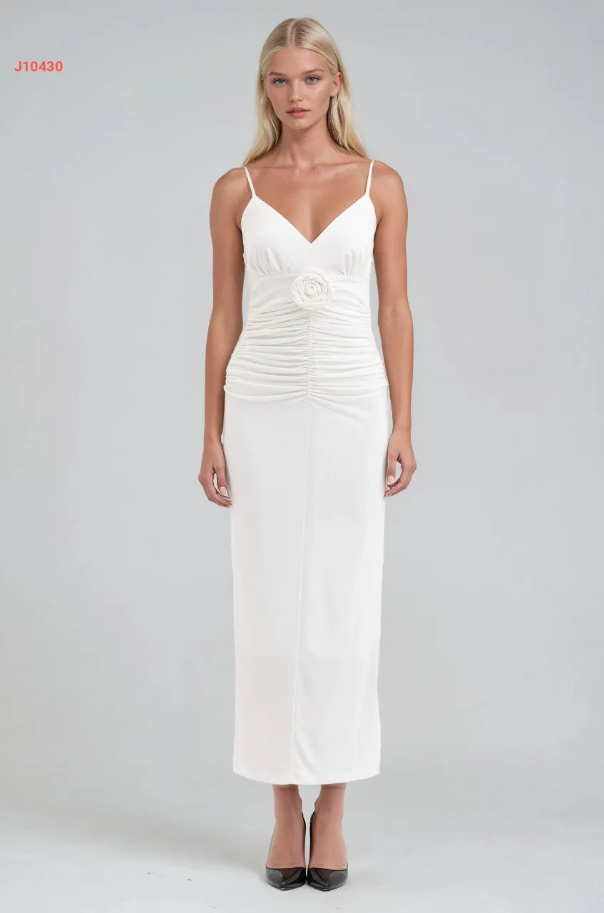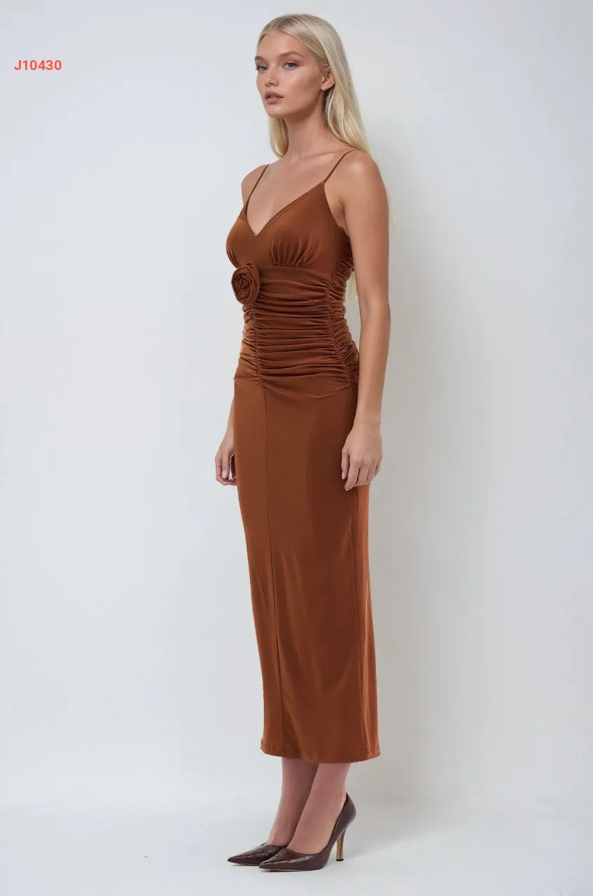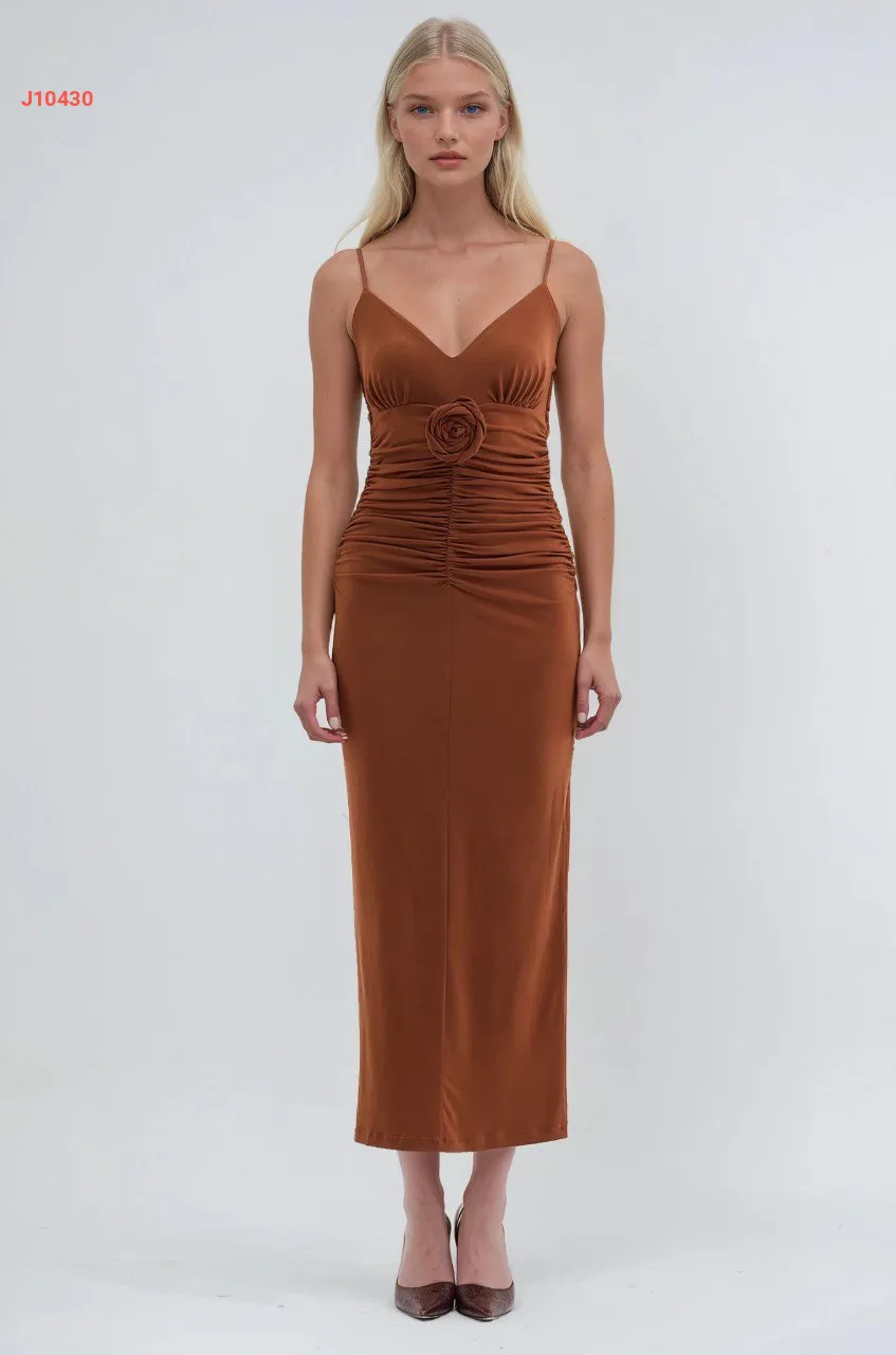 فستان بحمالات رفيعة مجمع بوردة