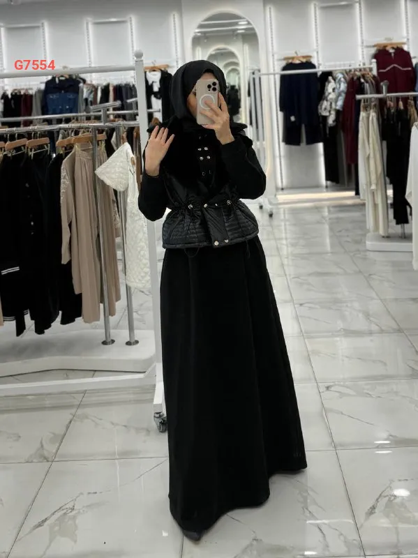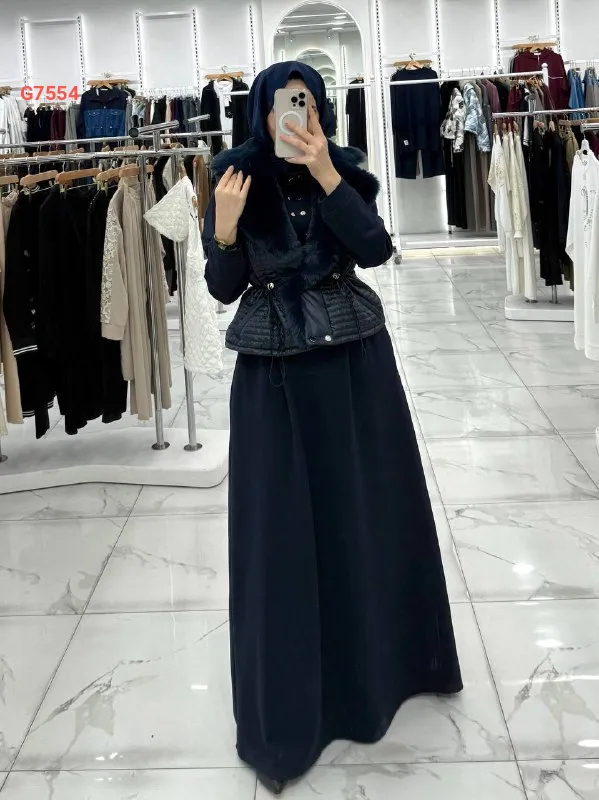 فستان مع فيست، كبسة زمة بالخصر، ياقة فرو
