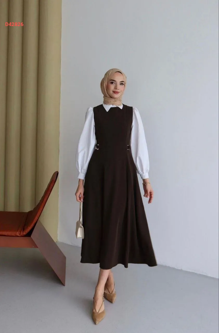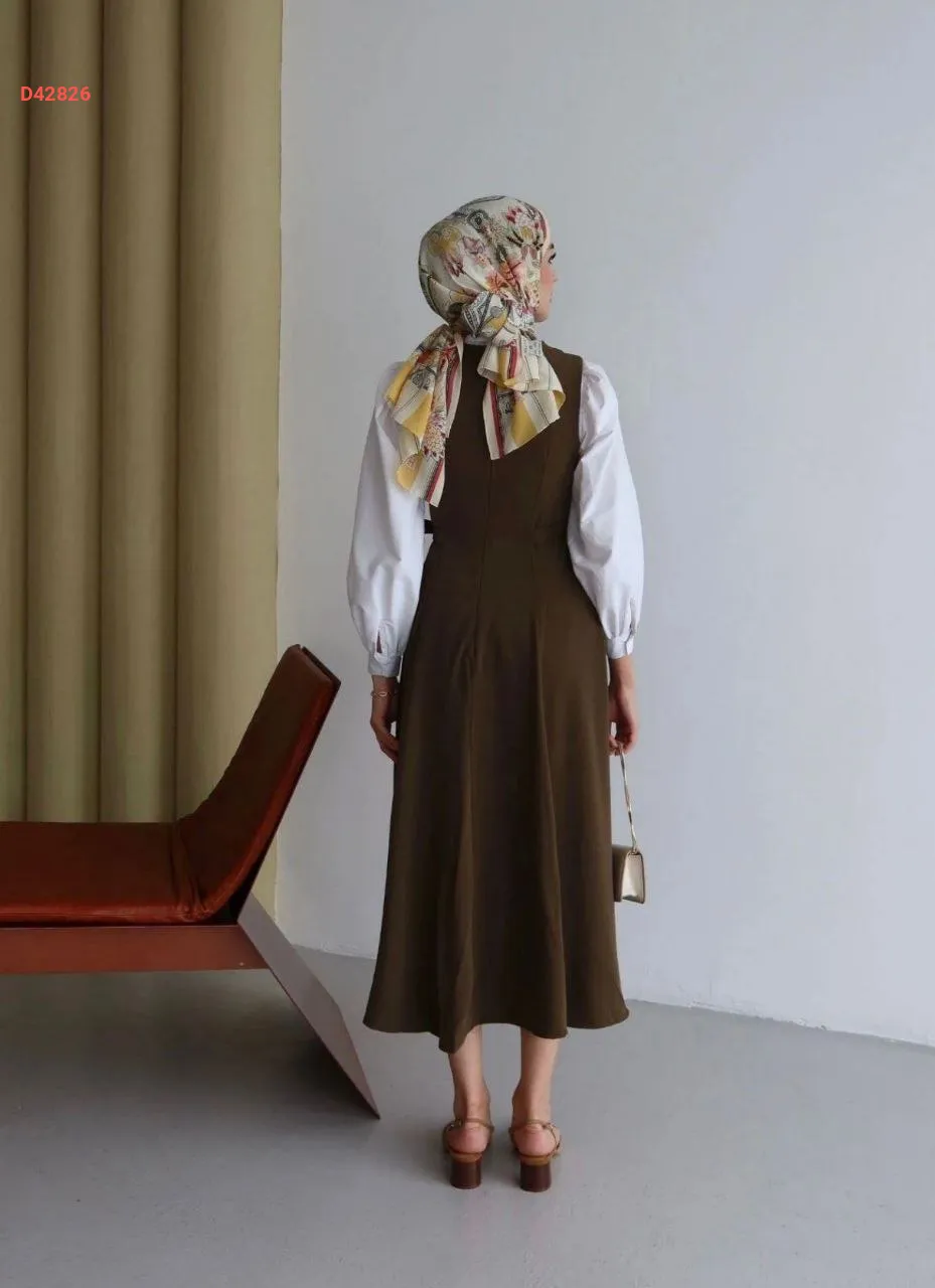 فستان بكسرات عريضة بسحاب على الظهر متعدد الألوان