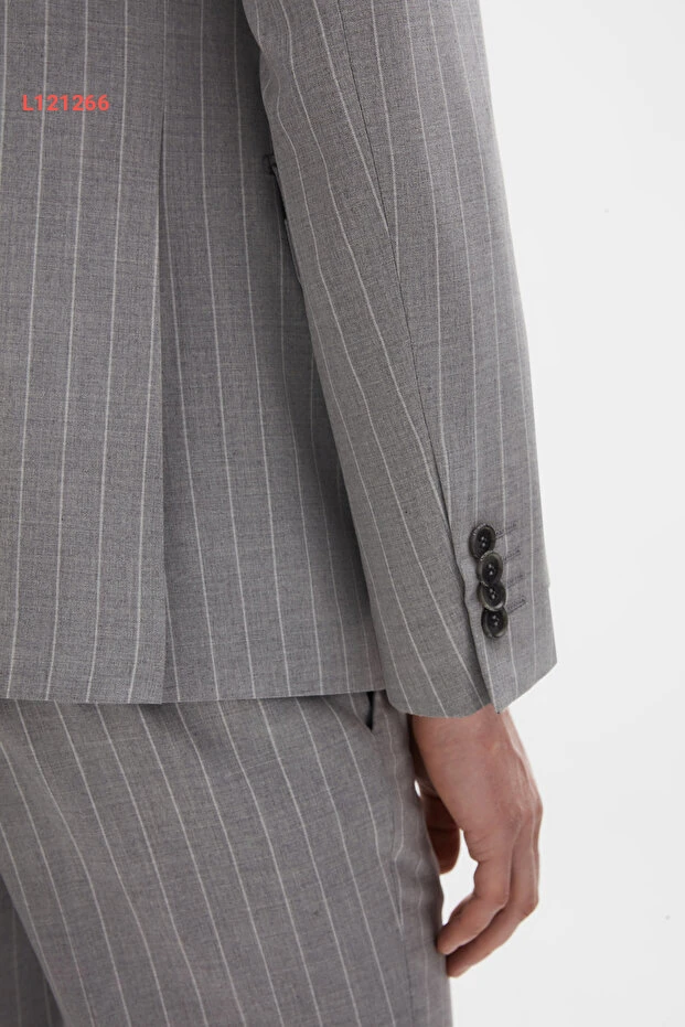 بدلة كرافات بتصميم عريض بلون رمادي مخطط من دي إس دامات