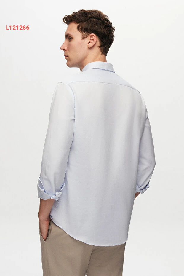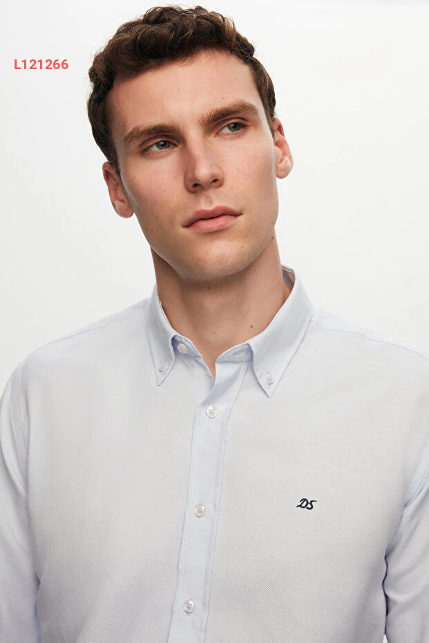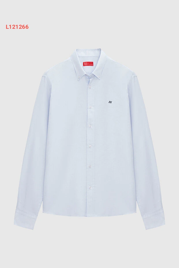 قمصان د.دامات أزرق أكسفورد بقصة Slim Fit مزودة بأزرار وتفاصيل تطريز سهلة الكي من القطن