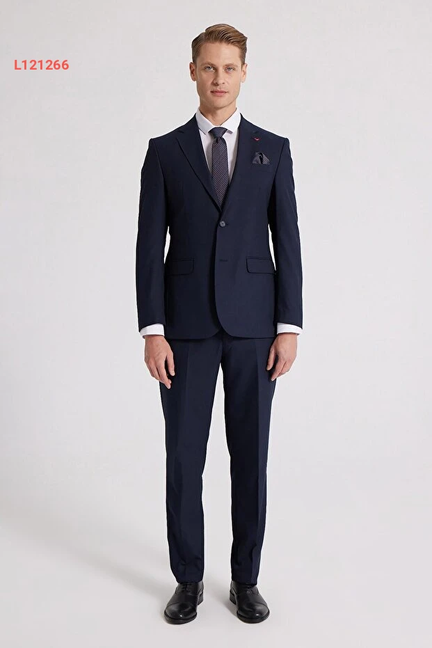 بدلة رسمية slim fit زرقاء داكنة من D'S Damat بليسيه مزدوج ومرونة عالية