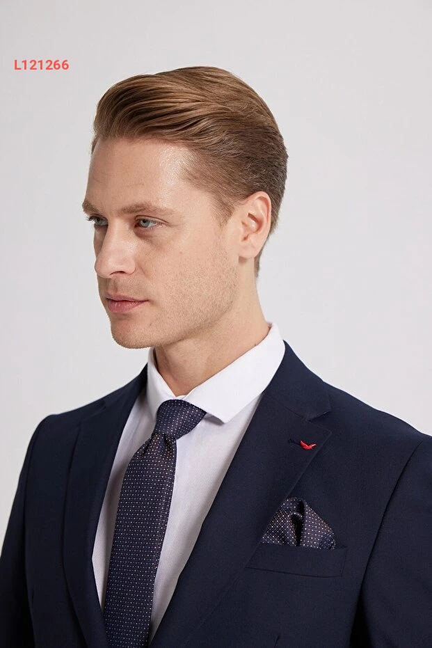 استمتع بالأناقة المثالية مع بدلة D'S Damat ذات التصميم النحيف باللون الأزرق الداكن، المصنوعة من قماش لكرالي يمنحك الراحة والمرونة في كل حركة. تتميز البدلة بياقة أحادية وشقين مزدوجين، مما يضيف لمسة عصرية لمظهرك، بينما يضمن الفُراء الداخلي الراحة الفائقة طوال اليوم. اختر التميز مع هذه البدلة التي تجمع بين الأسلوب والجودة العالية لتكون دائماً في صدارة الأناقة.