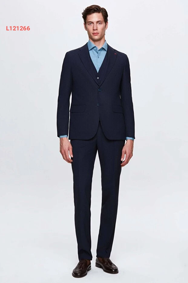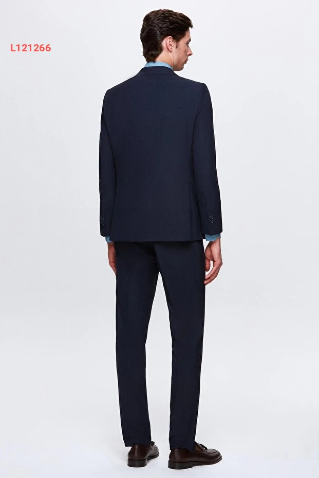 بدلة دي كي دامات بتصميم سليم فيت - كحلي، ذات ياقة مفردة، شق خلفي، وبطانة مع سترة