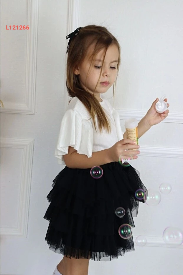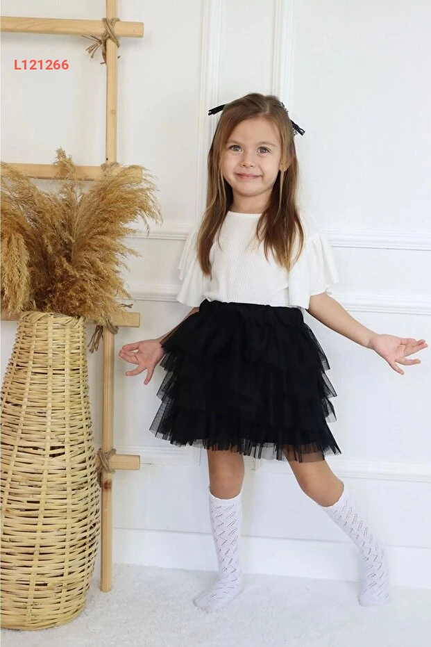 إطلالة ديدور للأطفال: طقم بلوزة وتنانير تويل سوداء مزخرف للفتاة