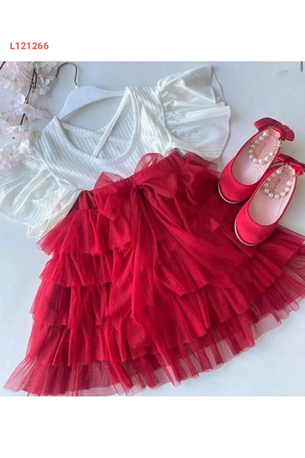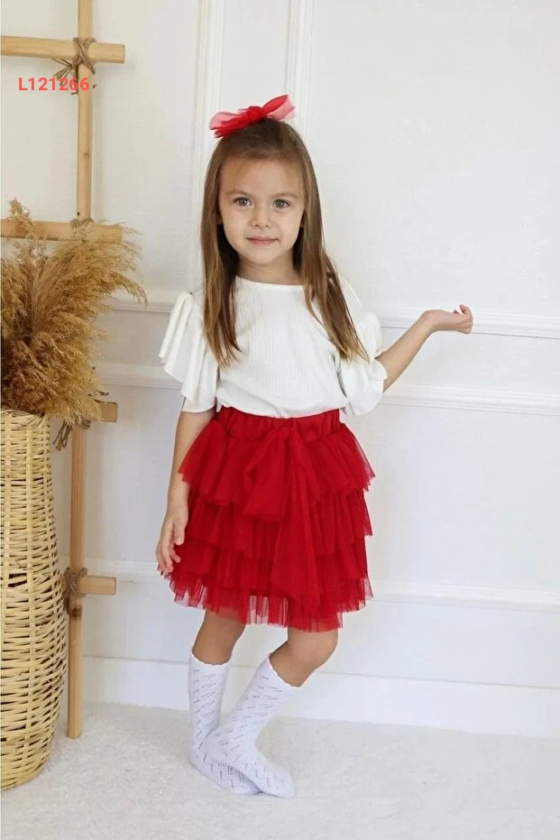 اجعل ابنتك تتألق في حفلاتها مع طقم DUDOR KİDS ذو التصميم الجذاب! يتكون من تنورة كشمير حمراء مزينة بالتول وبلوزة أنيقة، مما يجعله الخيار المثالي لعيد 23 نيسان والمناسبات الخاصة. يضمن الراحة والأناقة، ليجعل كل لحظة لها مليئة بالسعادة والتميز.