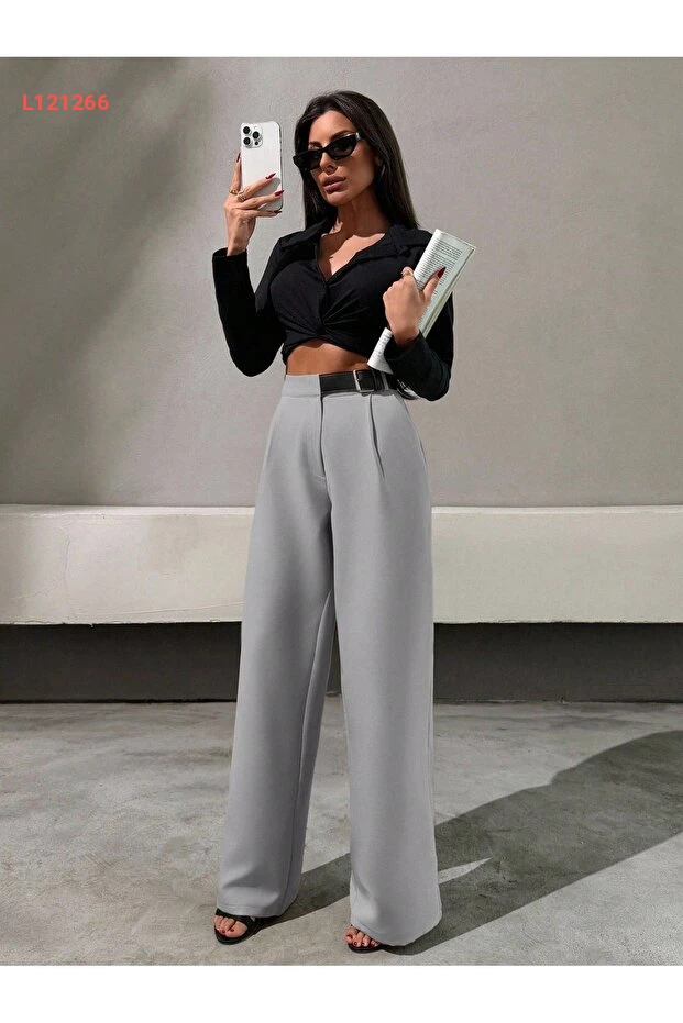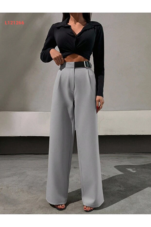 بنطال بالازو نسائي نصف مُزَوَّد بخصر مرن من ماركة DUUE FASHİON
