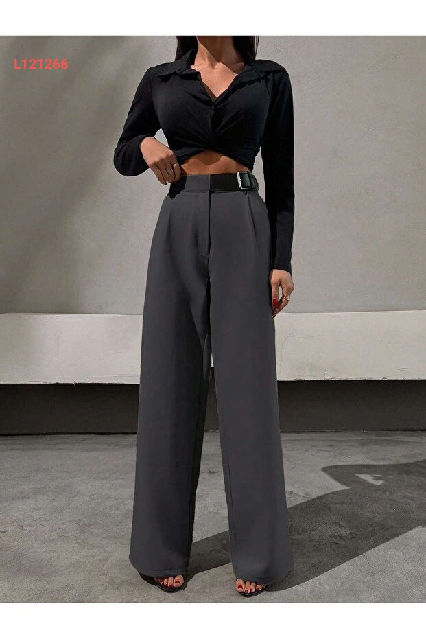 بنطلون بالازو فضفاض بقصة نصف حزام للنساء من دو دو فاشن