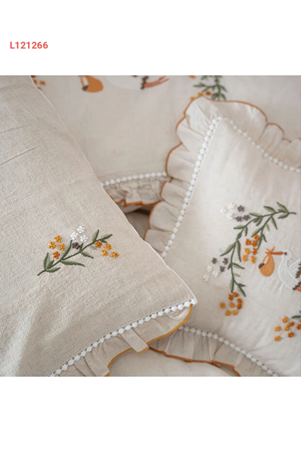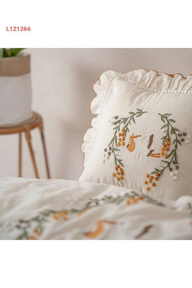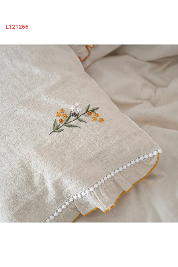 طقم مفارش سرير بيبي بولينا من إيكوكوتون - كتان 100% بتطريز يدوي، بيج 100x150 سم