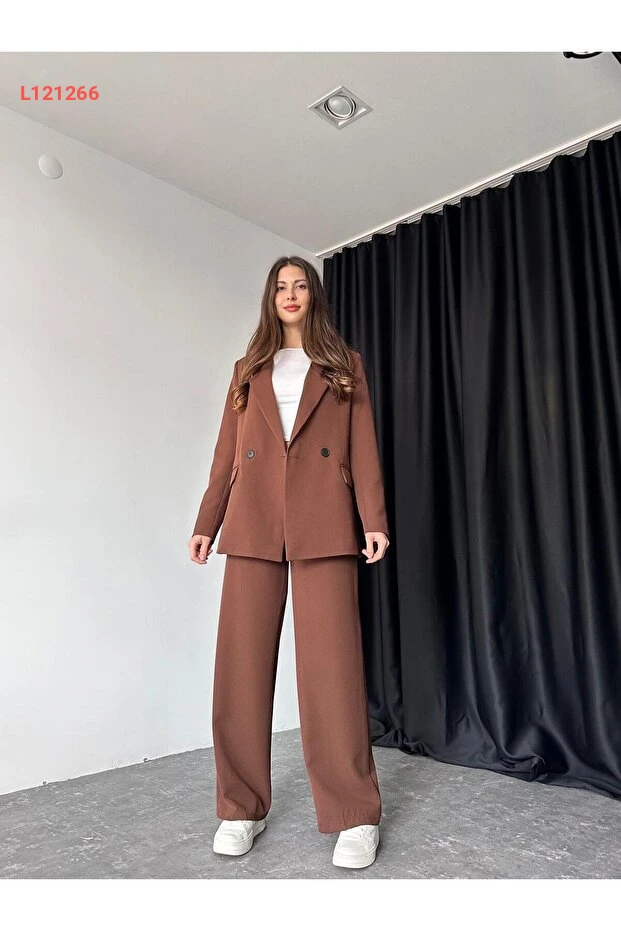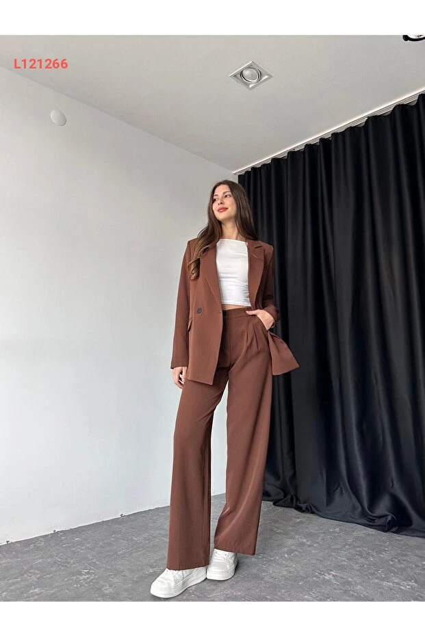 استمتعي بإطلالة أنيقة وعصرية مع مجموعة Efsun Moda للنساء، التي تتضمن سترة بأحجام واسعة وسروال متناسق. تتميز بتفاصيلها الأنيقة والبطانة العالية الجودة، مما يوفر لكِ الراحة والأسلوب الجذاب في جميع المناسبات. ارتديها مع قطعك المفضلة لتظهري بإطلالة رائعة وجريئة.