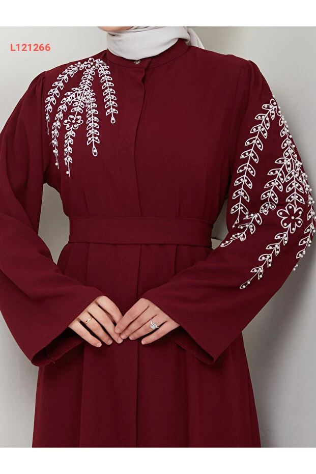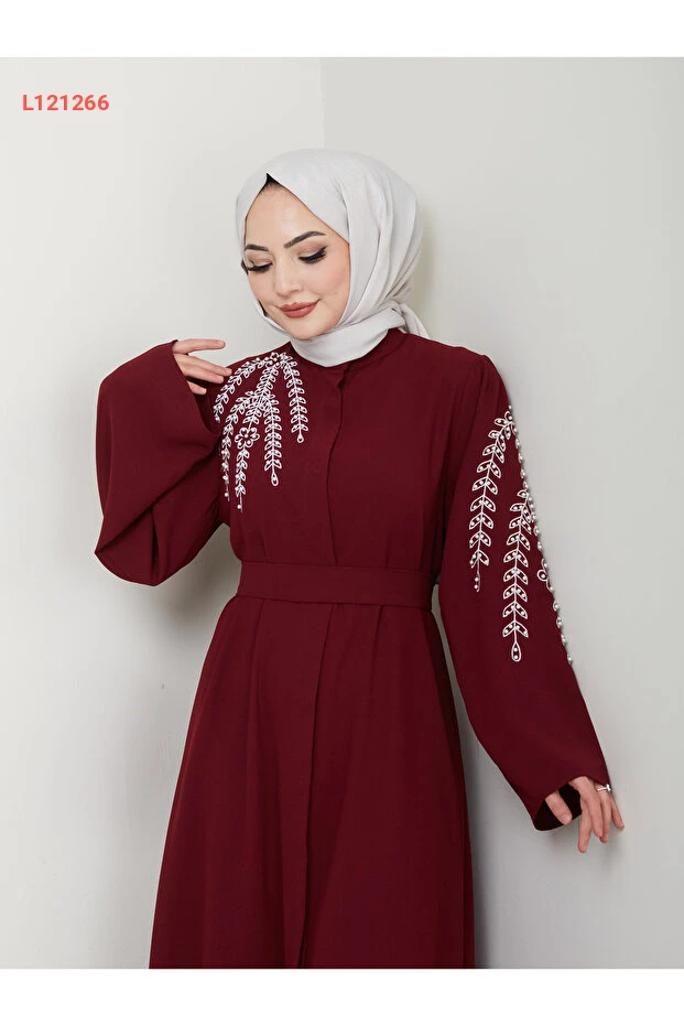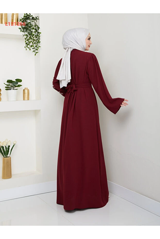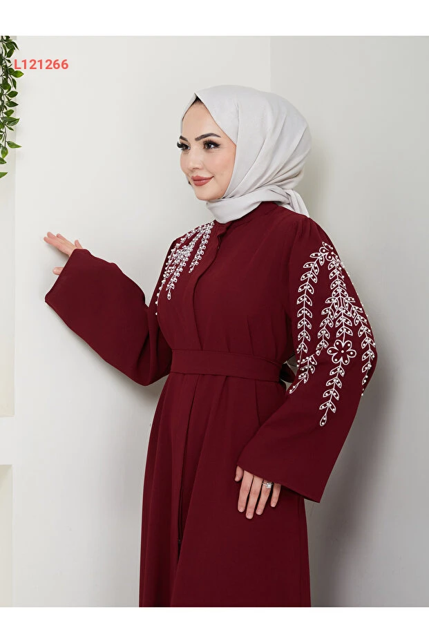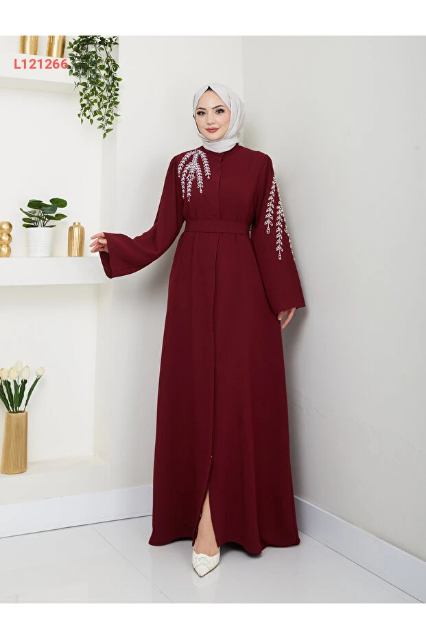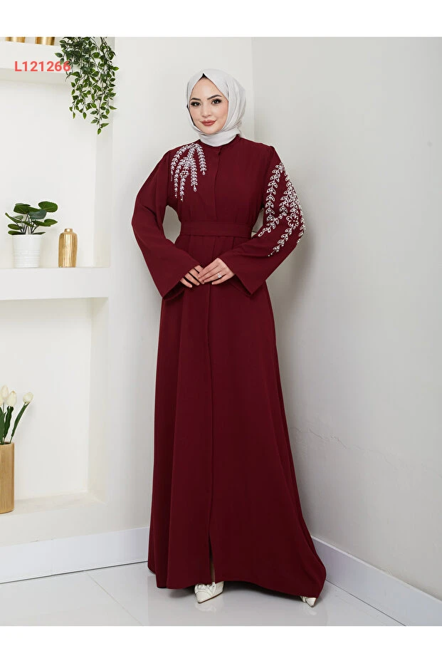 استمتعي بأناقة لا مثيل لها مع عباية EFSUN MODA المزينة بالأحجار اللامعة، التي تجمع بين الرقي والراحة. بلون البوردو الجذاب، تتناسب هذه الفستان الفريد مع مختلف المناسبات، بينما توفّر تصميمًا عصريًا يحترم قواعد الحجاب. اجعلي إطلالتك تتألق بالثقة والفخامة!