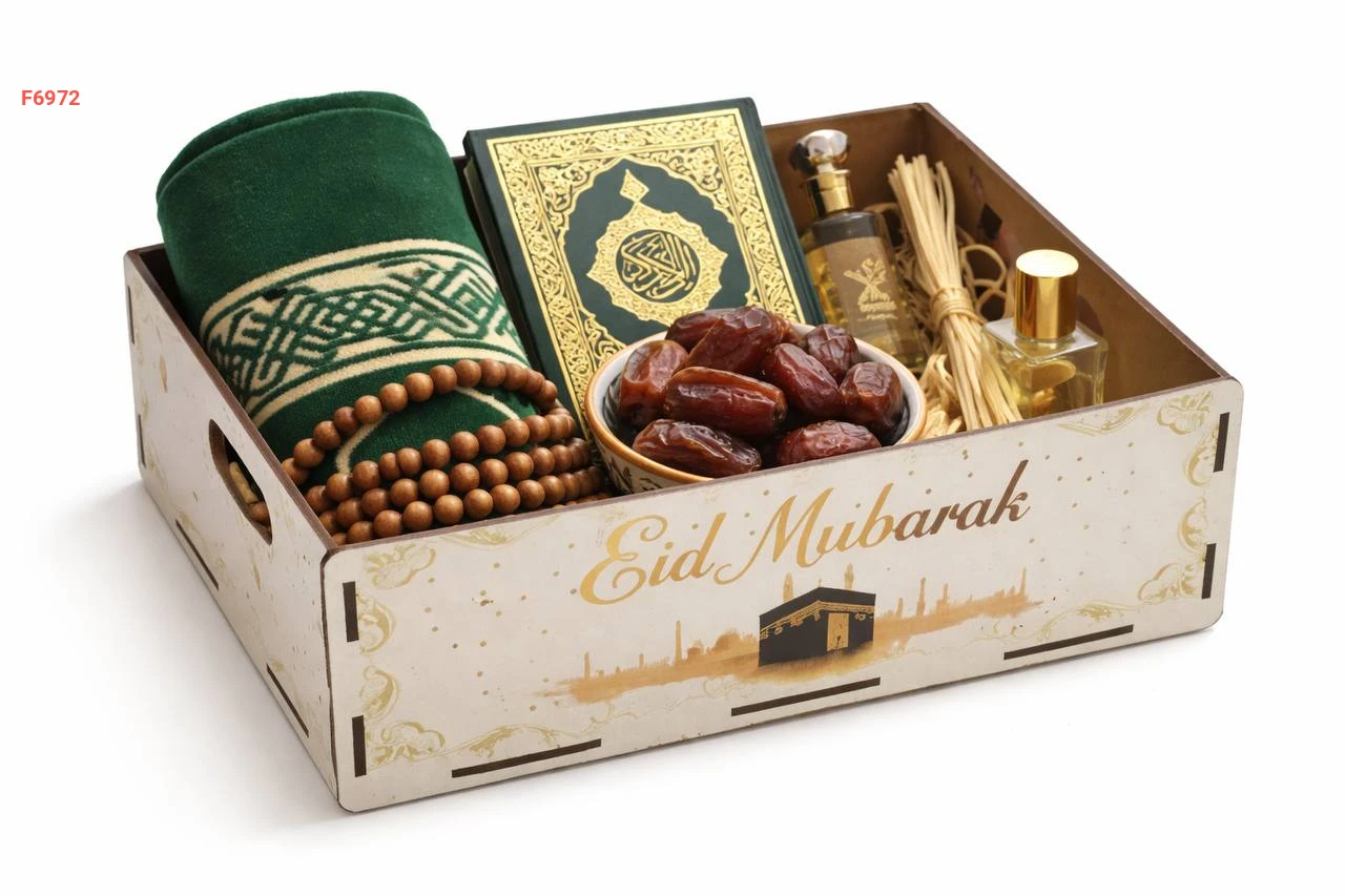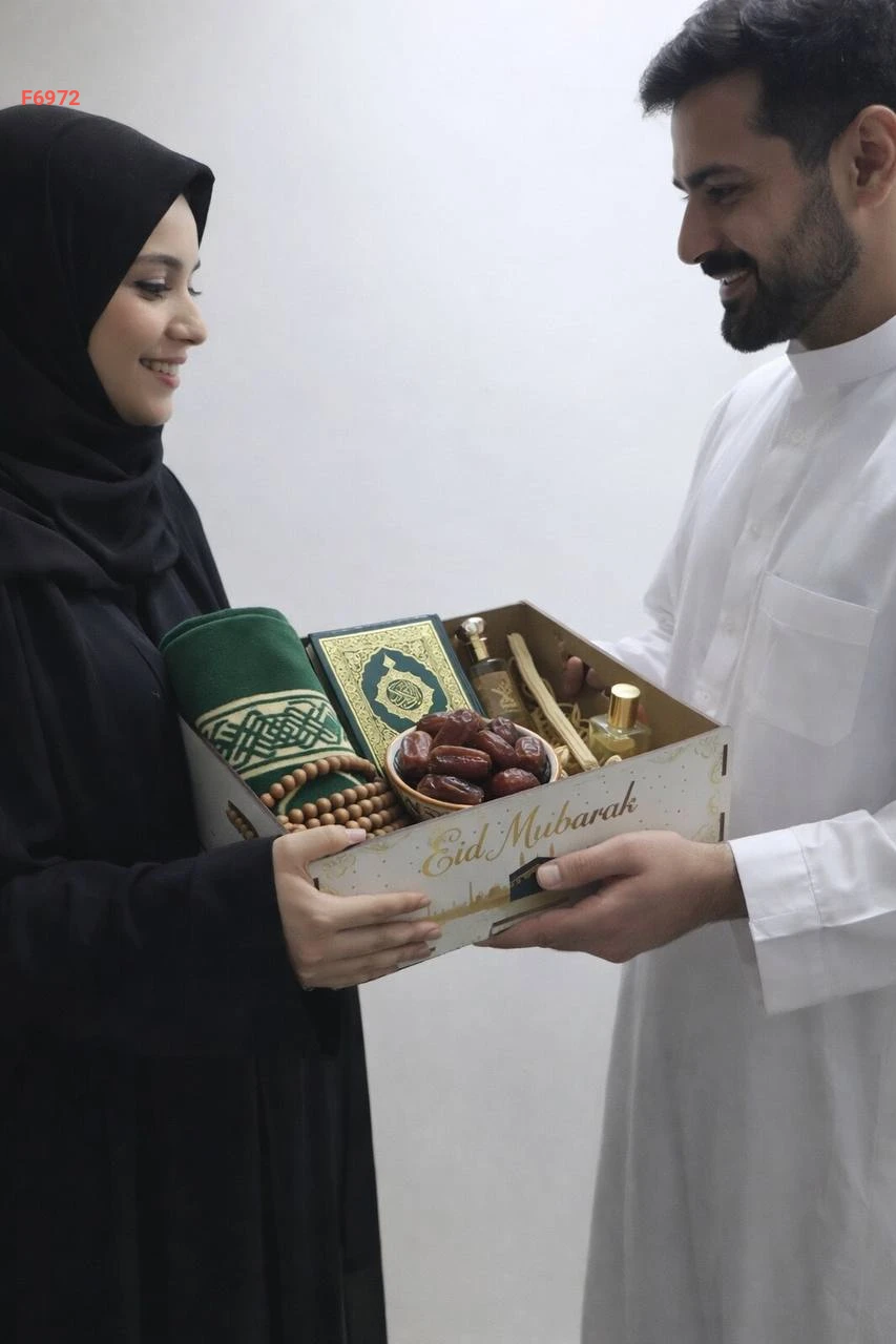 يمكن وضع هدايا إسلامية بالبوكس مثل التمر والقرآن الكريم ومجموعة عديدة