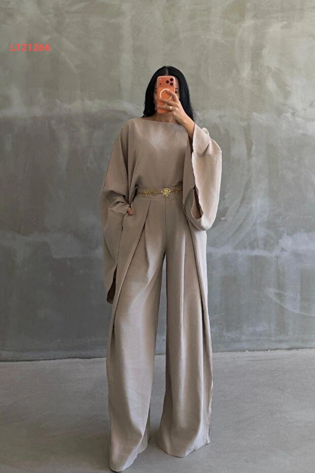 استمتع بالأناقة والراحة مع طقم Ekim Store المكون من بلوزة واسعة بأكمام خفيفة وسروال بتصميم عصري. مصنوع من قماش الكتان عالي الجودة، يجمع هذا الطقم بين الراحة والأناقة، مما يجعله خيارًا مثاليًا لأي مناسبة. تألقي بإطلالة عصرية ومريحة تبرز شخصيتك المميزة!