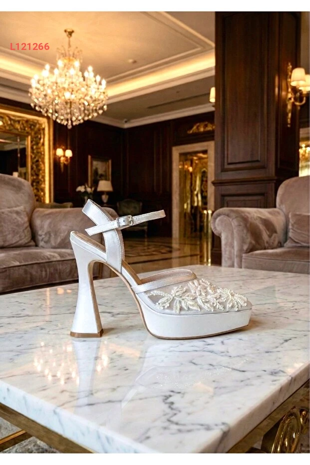 E&L Company 12cm Beyaz saten incili işleme transparan modeldir. Muazzam el işçiliği.